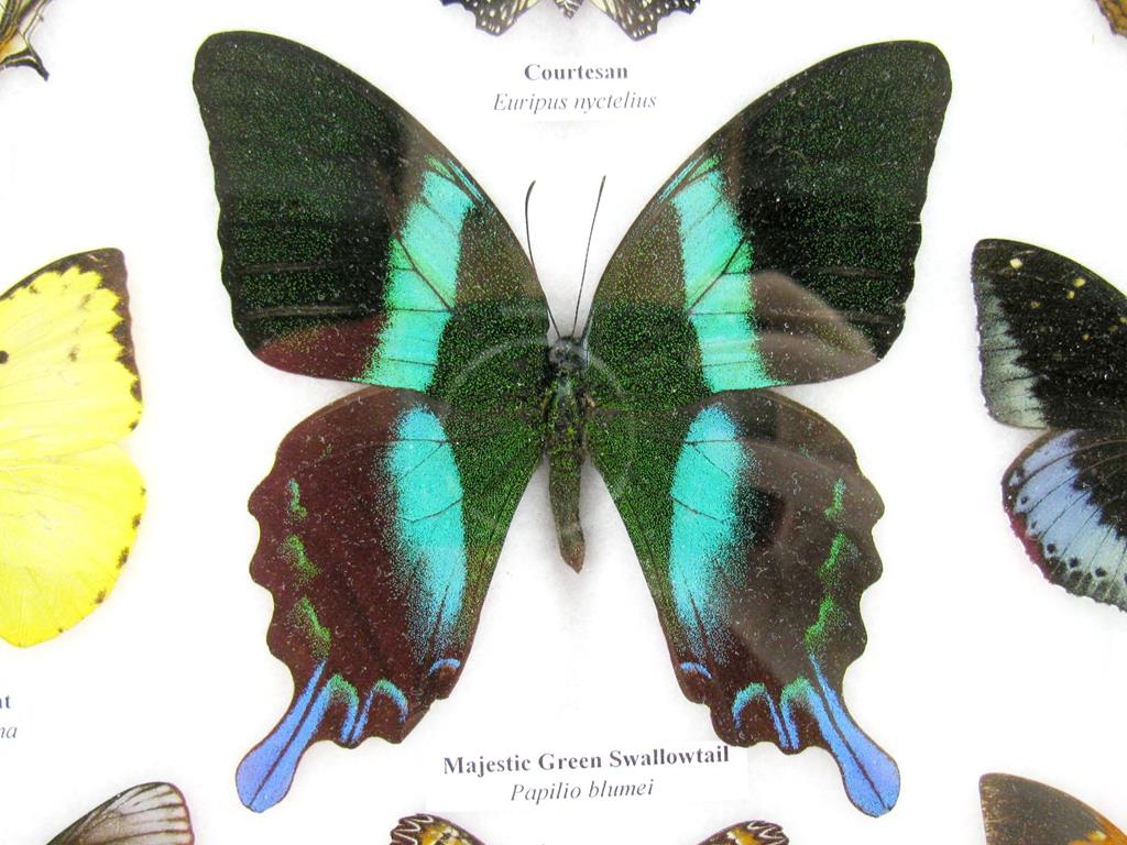 Wunderschöne, echte, präparierte Schmetterlinge als Wandbild im Schaukasten in perfekter Museumsqualität kaufen Sie hier