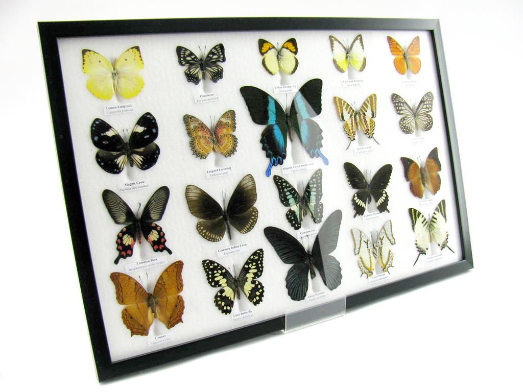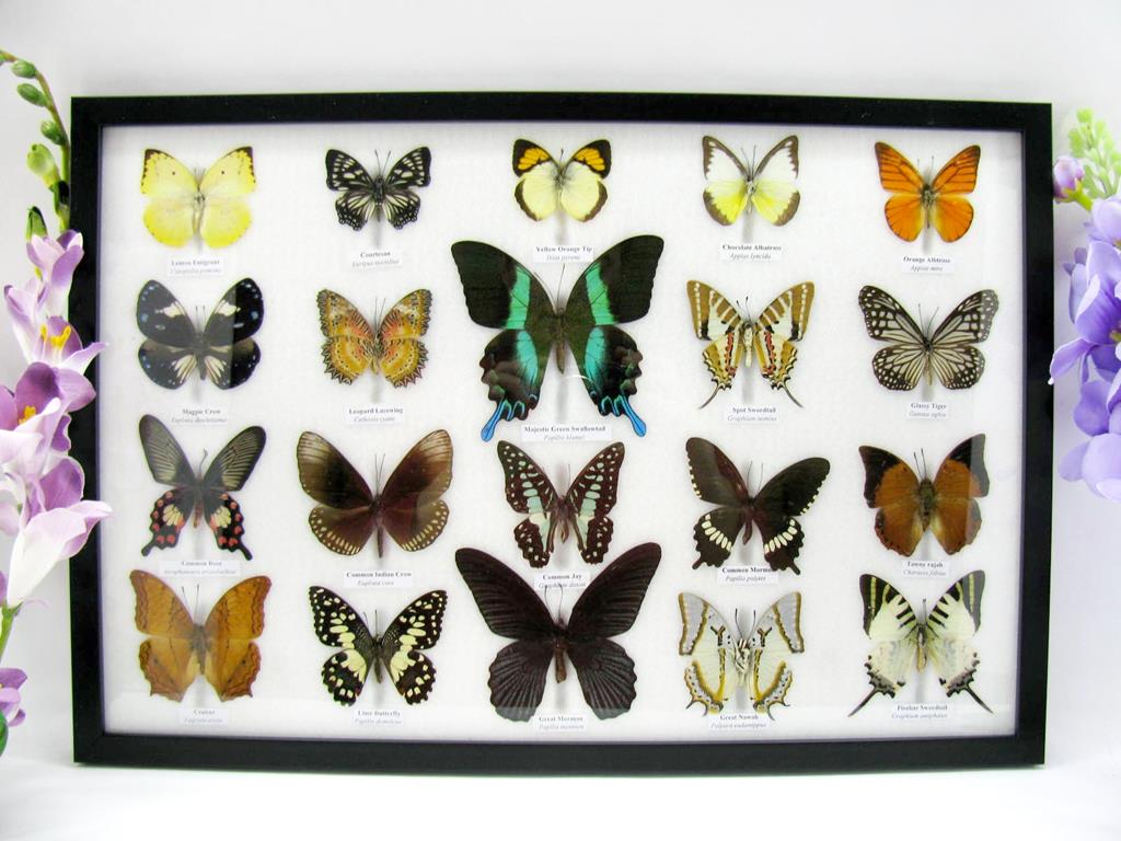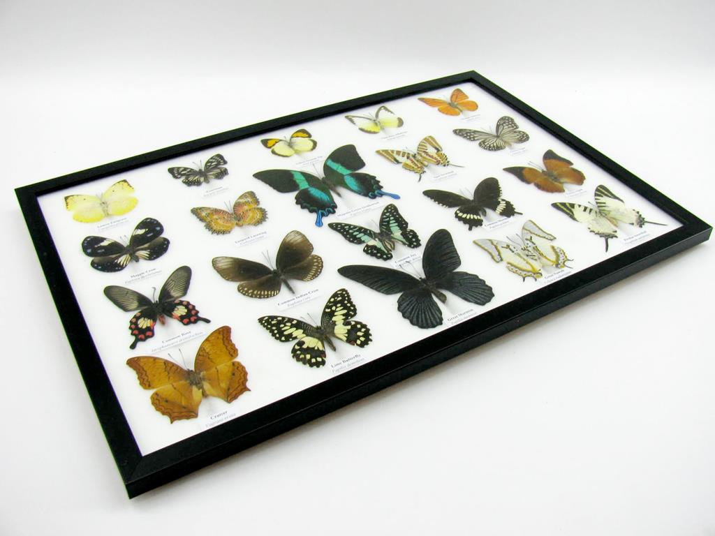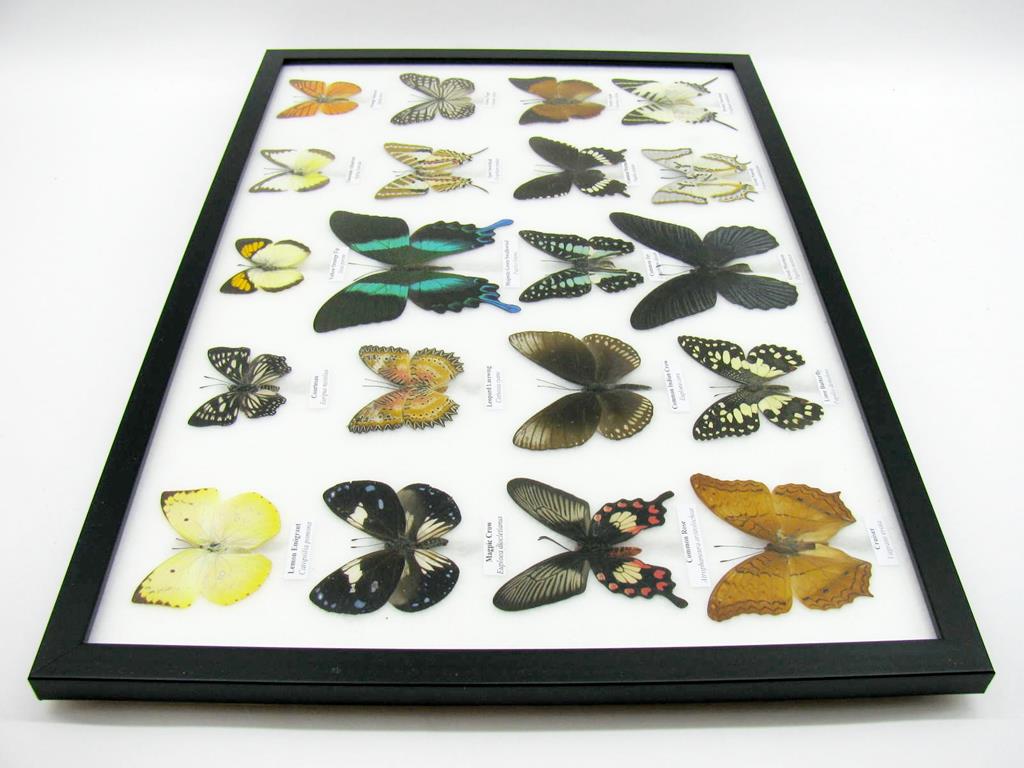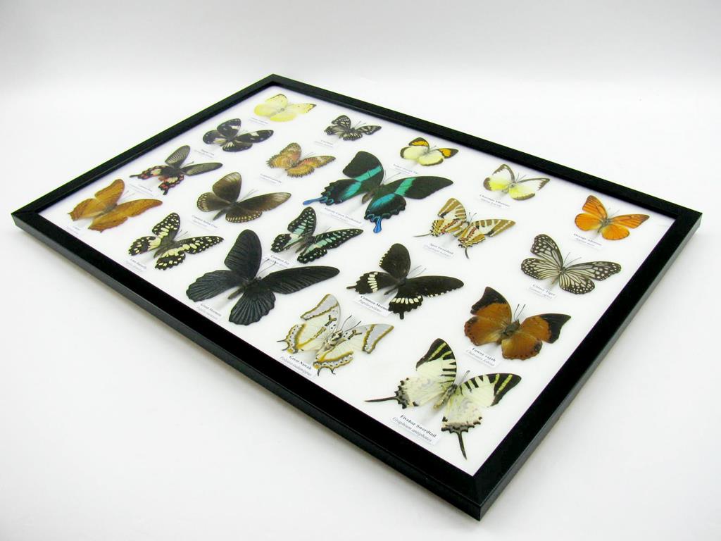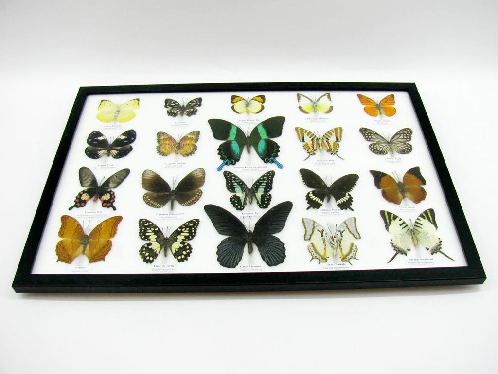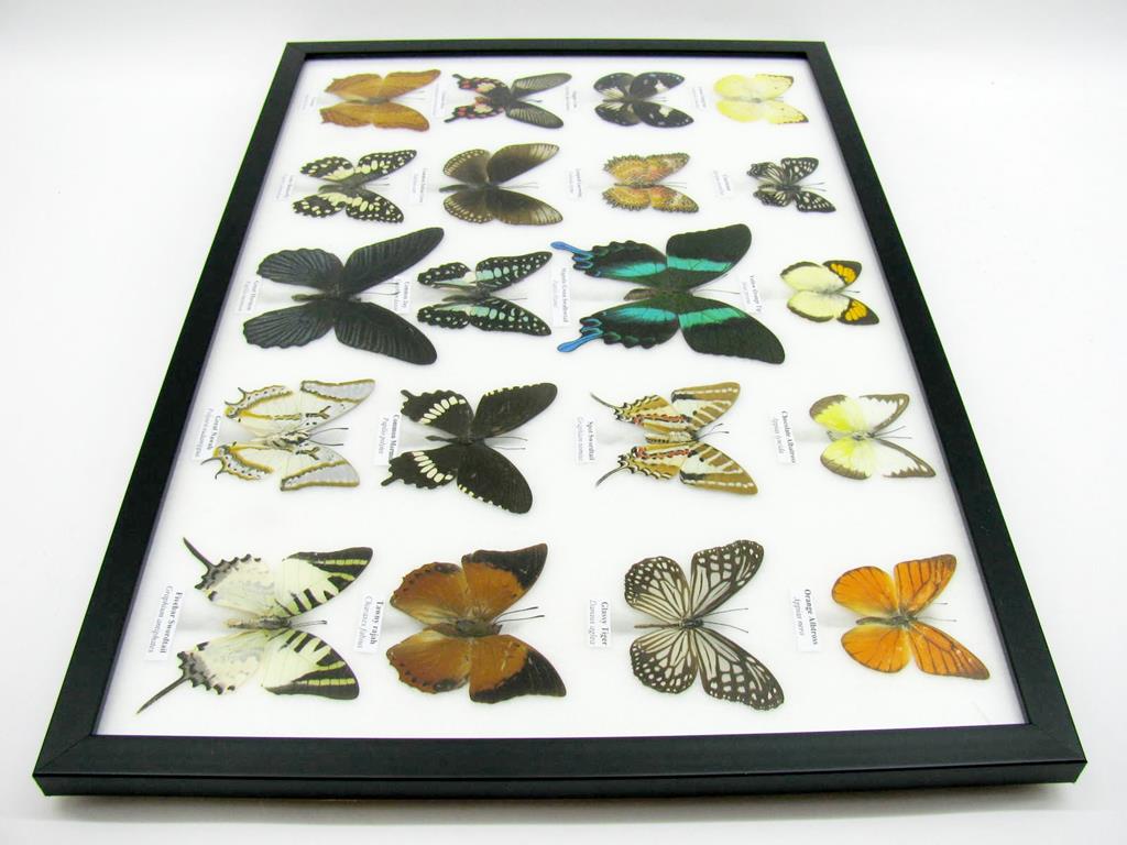 20 wunderschöne echte Schmetterlinge im schwarzen Rahmen als Wandbild – A-20-madam-04