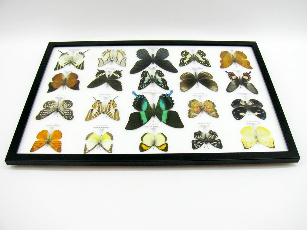 20 wunderschöne echte Schmetterlinge im schwarzen Rahmen als Wandbild – A-20-madam-06