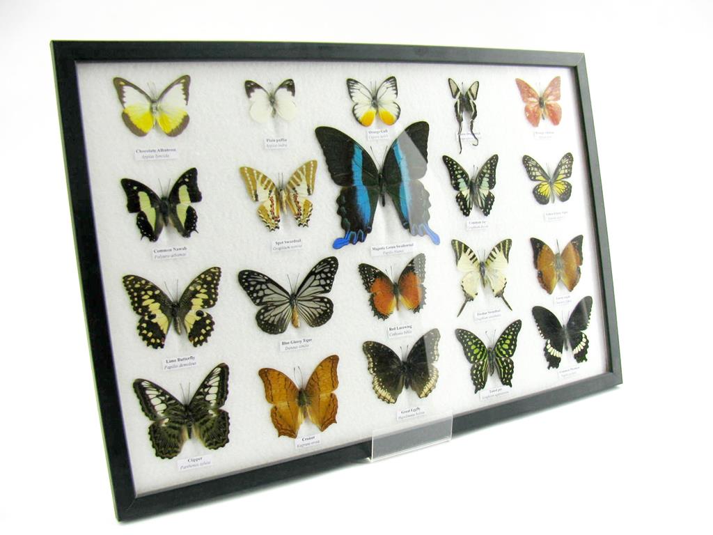 20 echte Schmetterlinge im XXL Bilderrahmen A-20-o-13