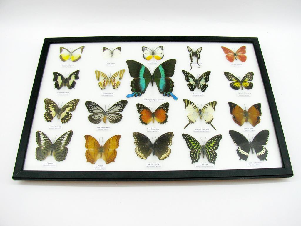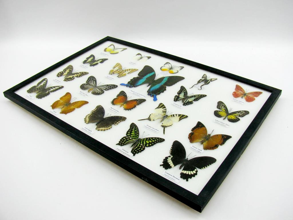 20 wunderschöne echte Schmetterlinge im schwarzen Rahmen als Wandbild – A-20-madam-04