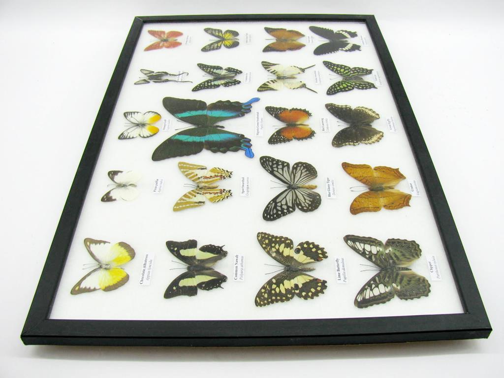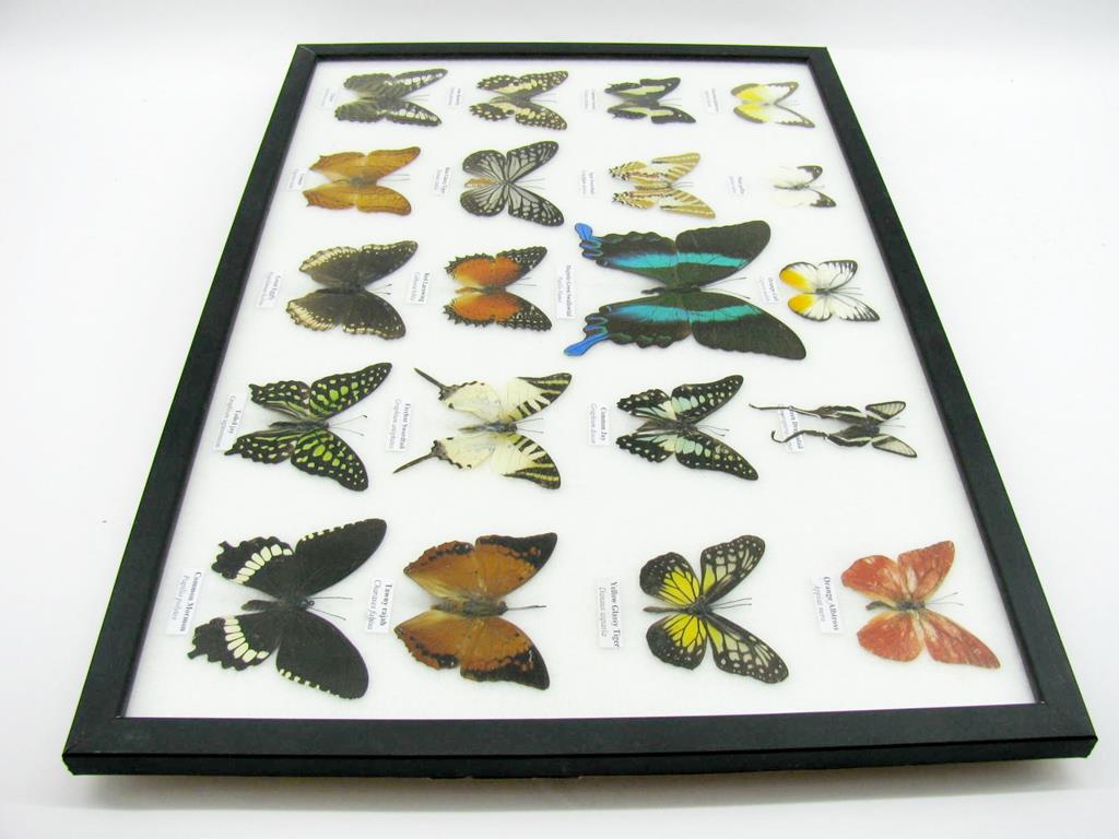 20 wunderschöne echte Schmetterlinge im schwarzen Rahmen als Wandbild – A-20-madam-03
