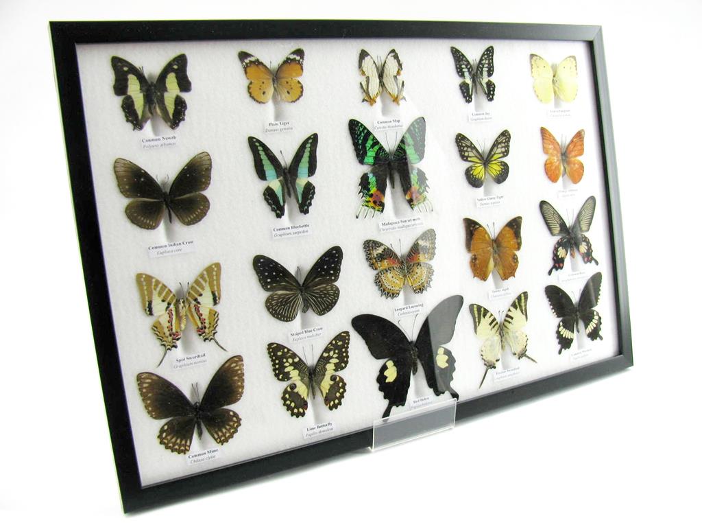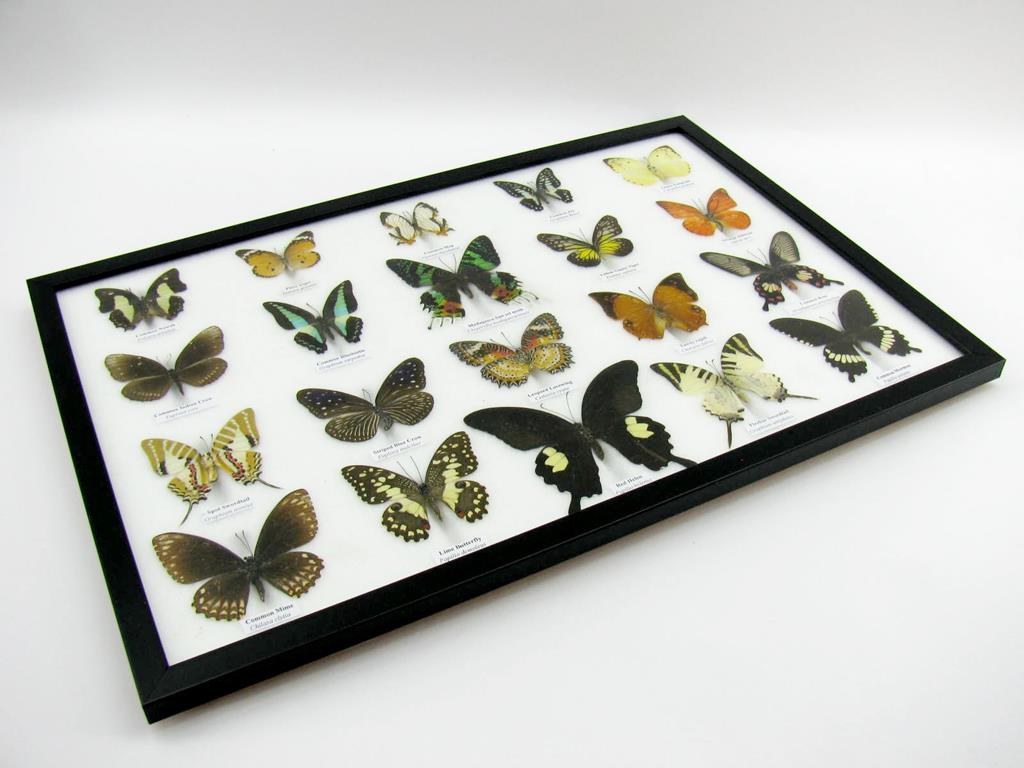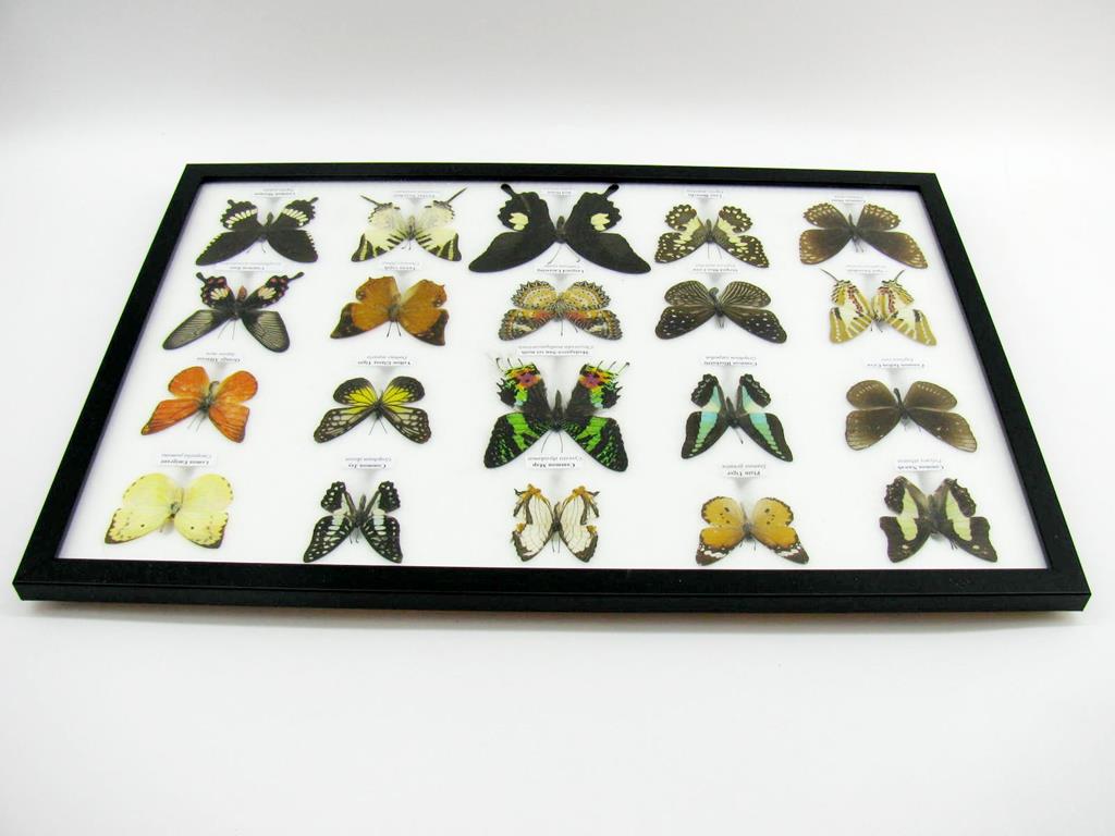 20 wunderschöne echte Schmetterlinge im schwarzen Rahmen als Wandbild – A-20-madam-02