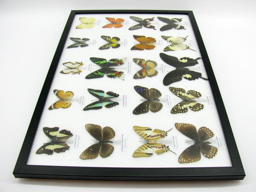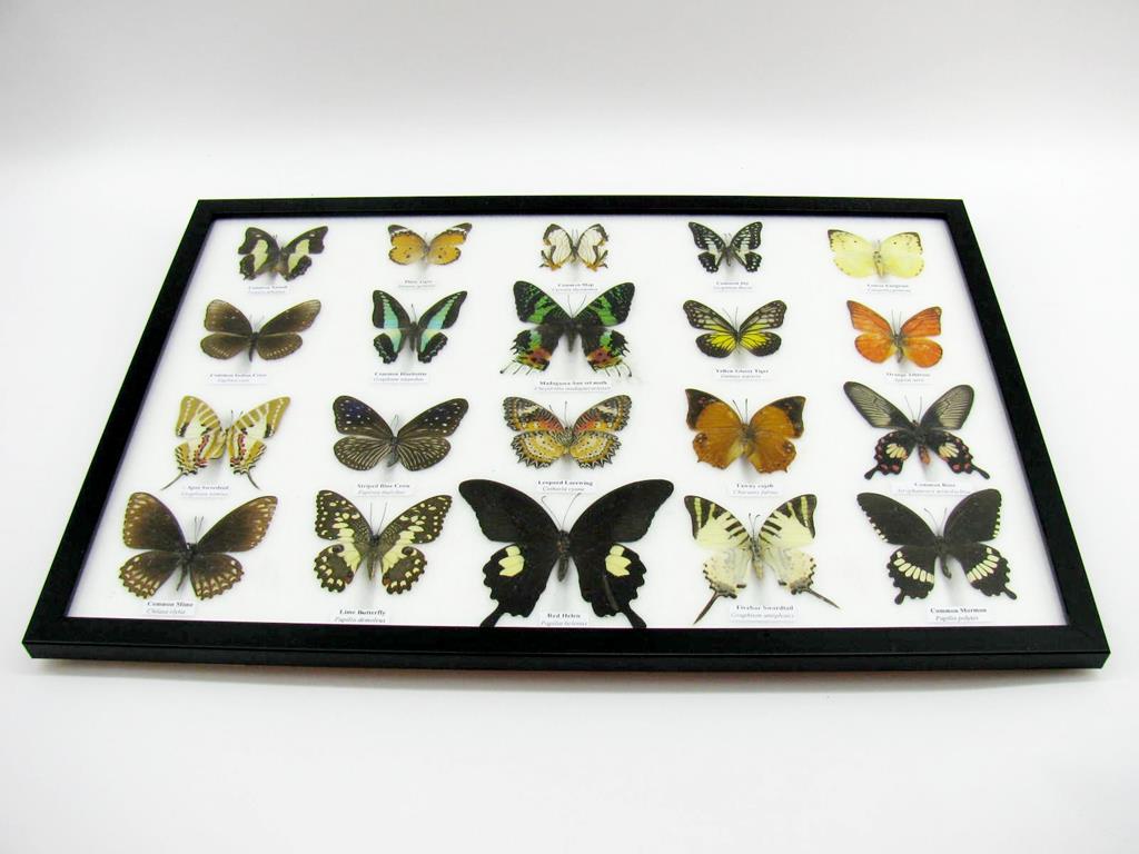 20 wunderschöne echte Schmetterlinge im schwarzen Rahmen als Wandbild – A-20-madam-04