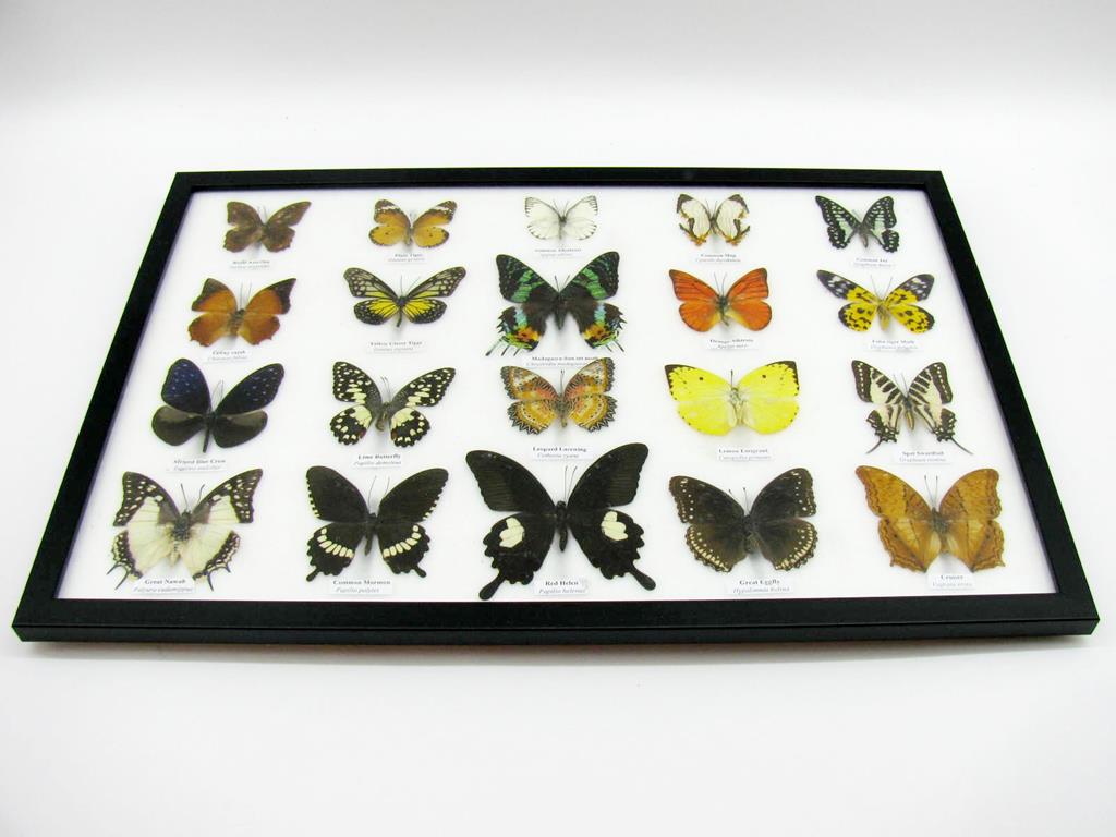 20 wunderschöne echte Schmetterlinge im schwarzen Rahmen als Wandbild – A-20-madam-08