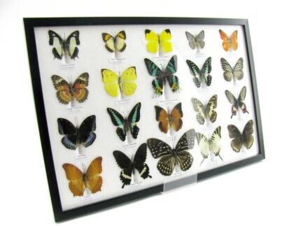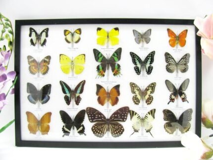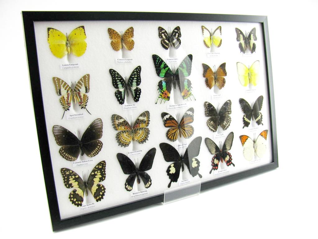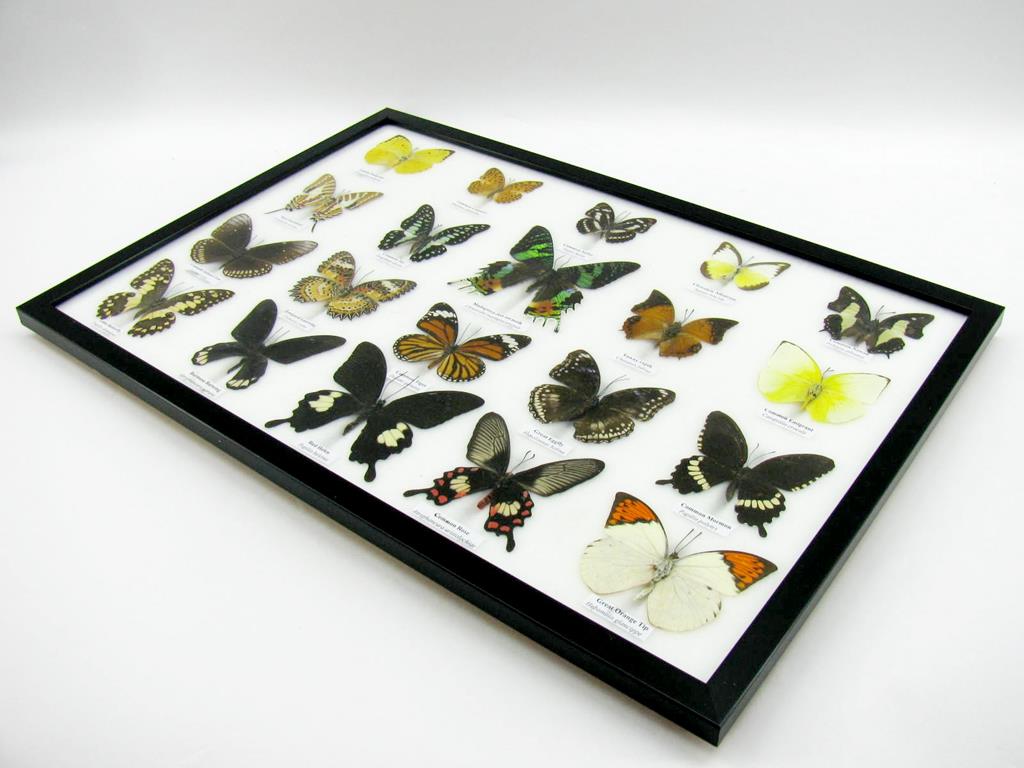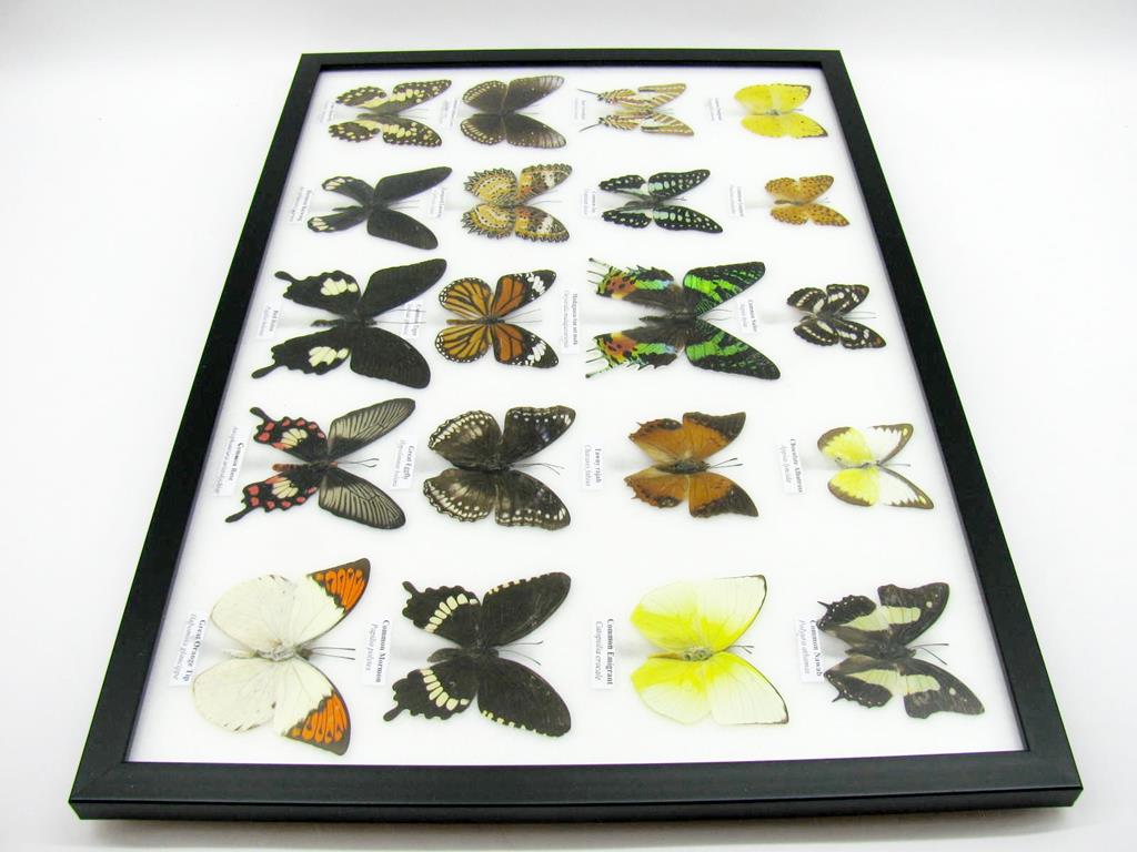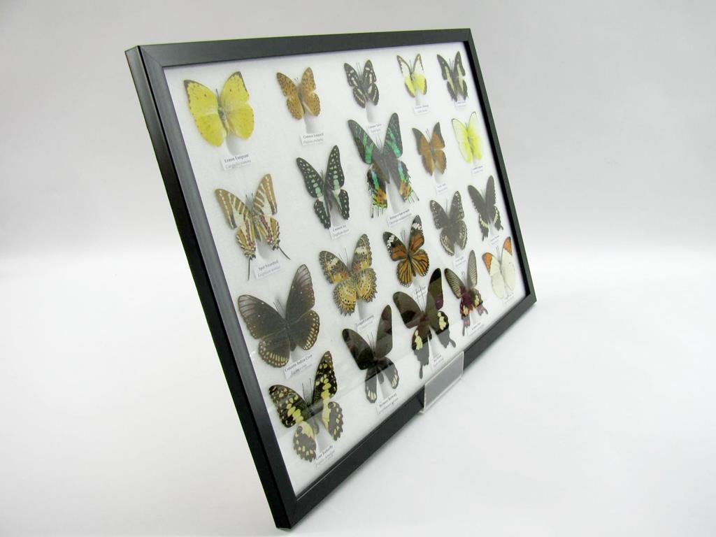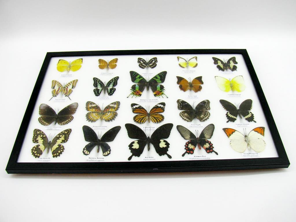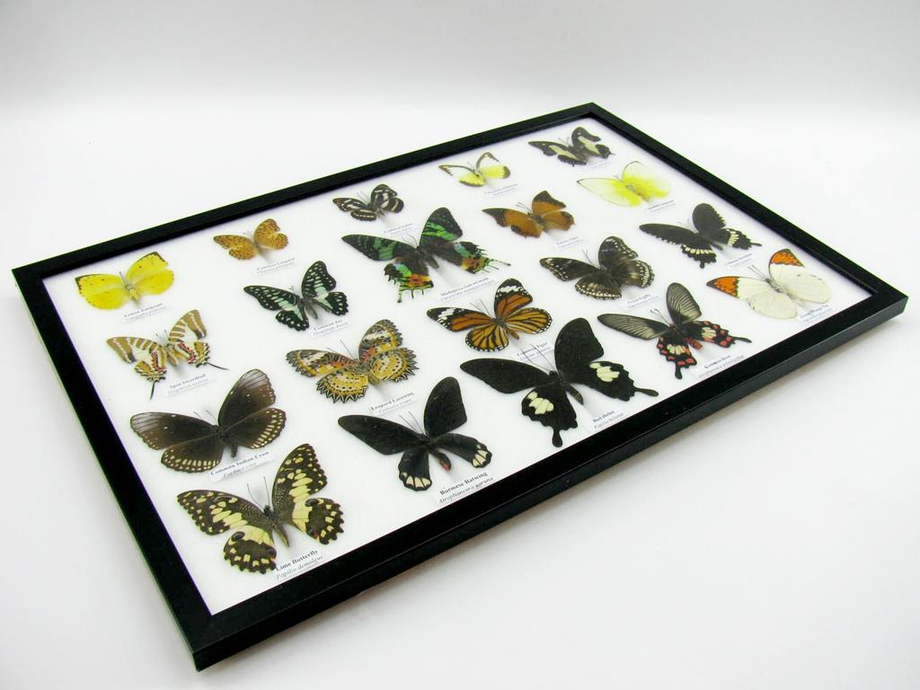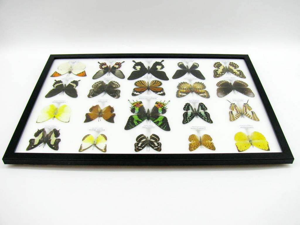 20 wunderschöne echte Schmetterlinge im schwarzen Rahmen als Wandbild – A-20-madam-08
