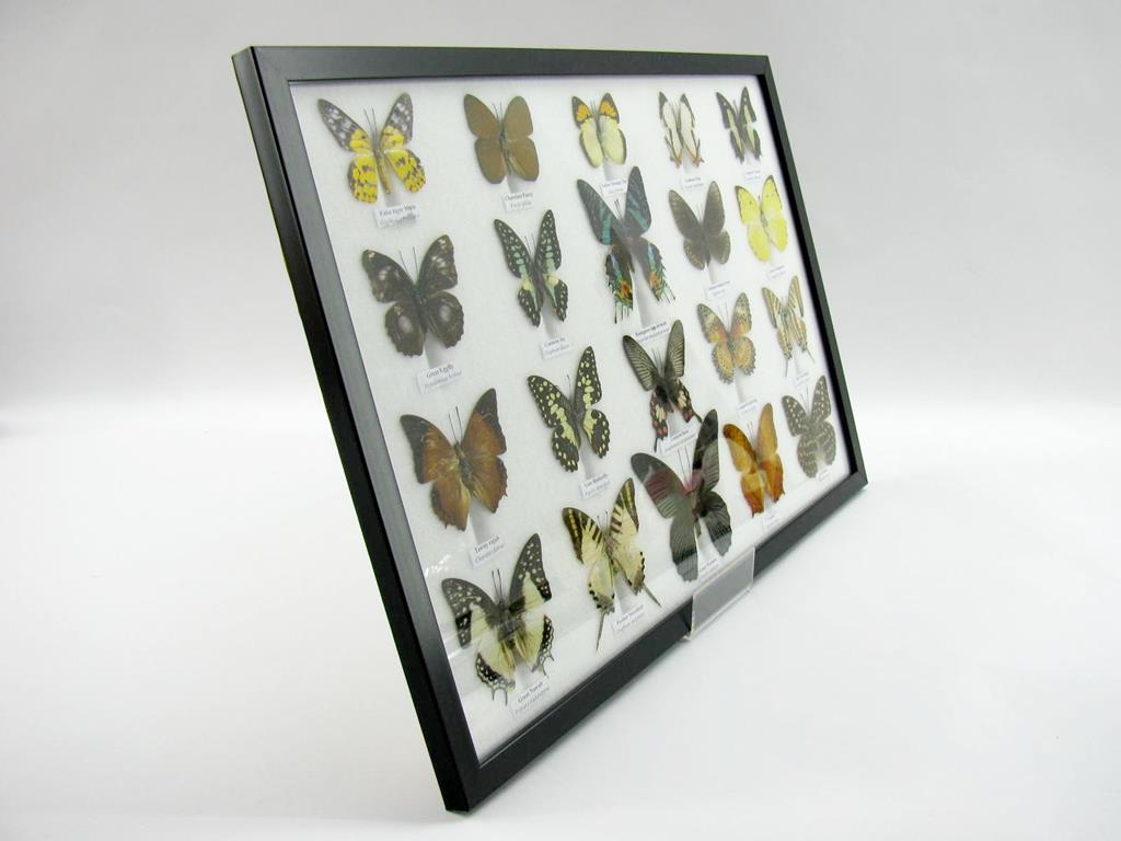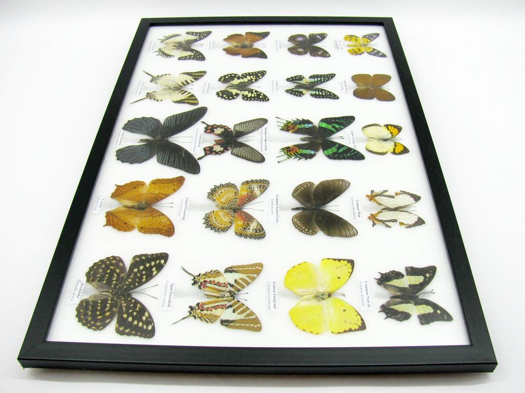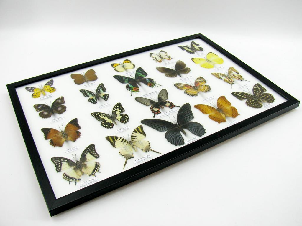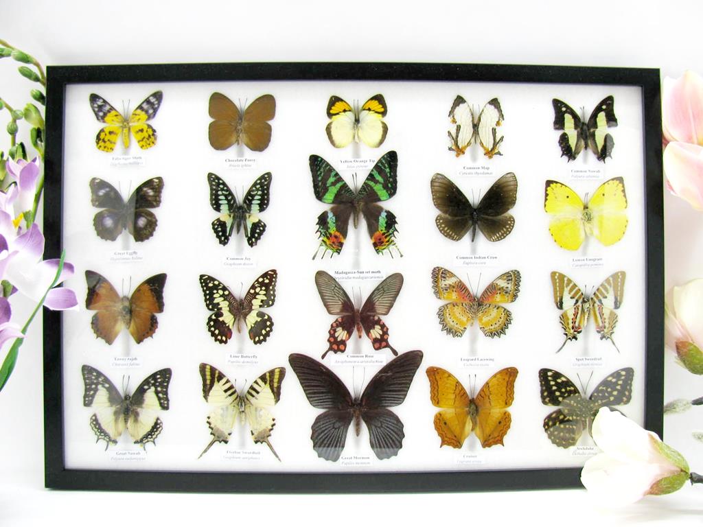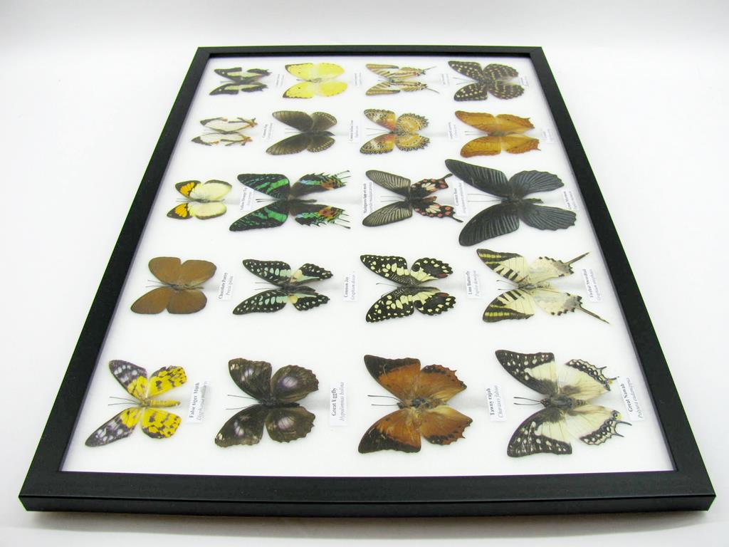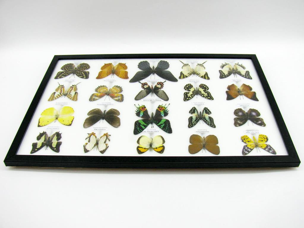 20 wunderschöne echte Schmetterlinge im schwarzen Rahmen als Wandbild – A-20-madam-01