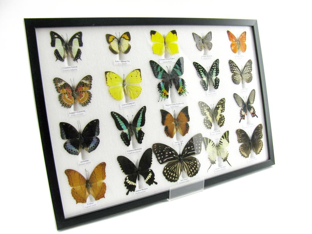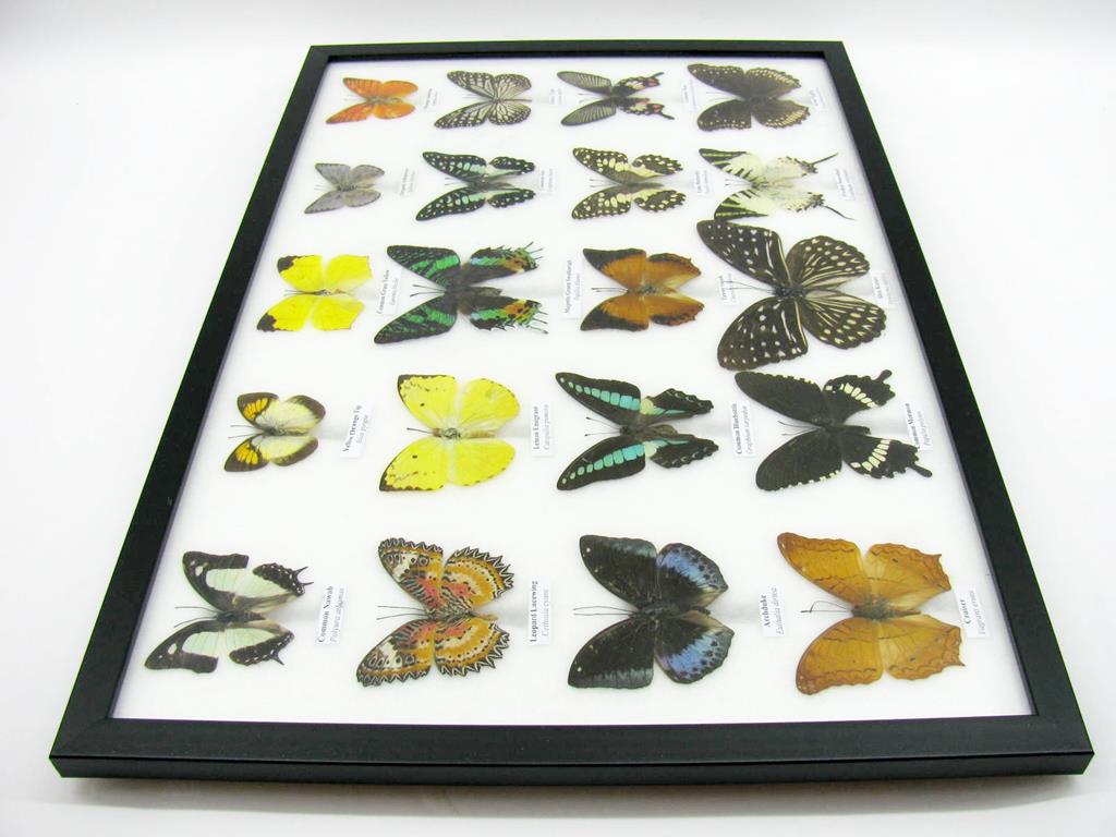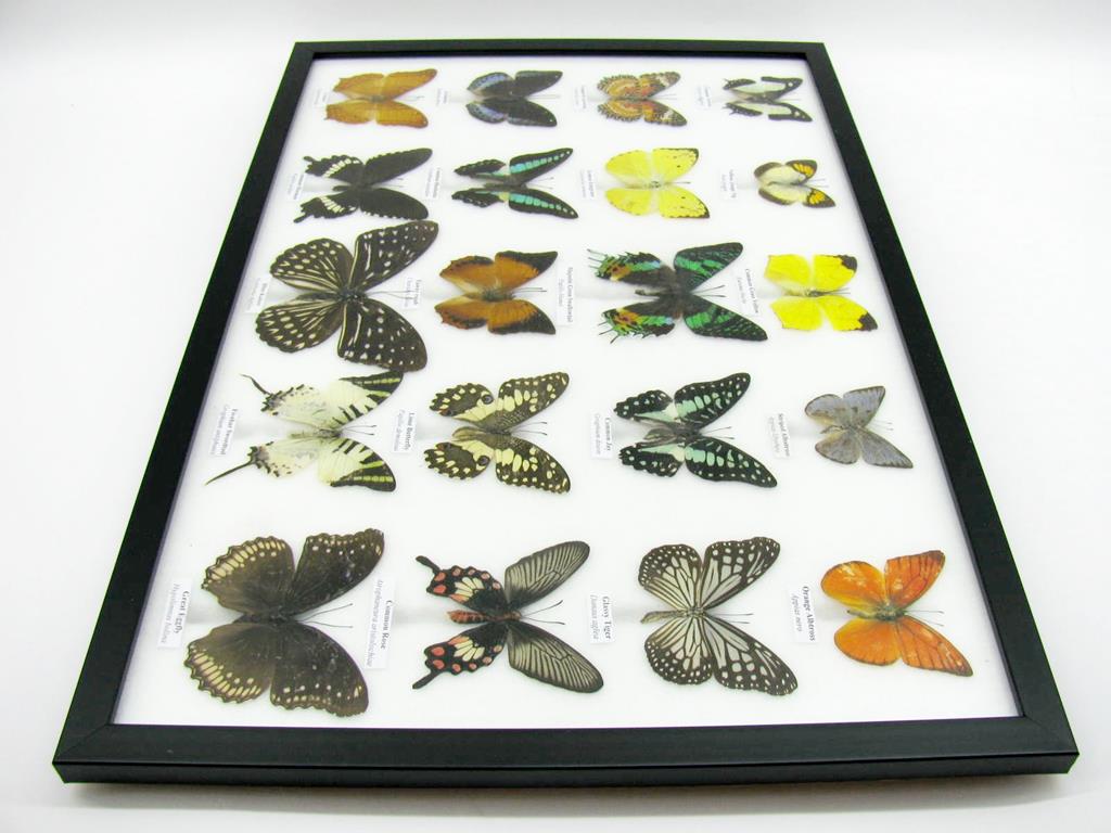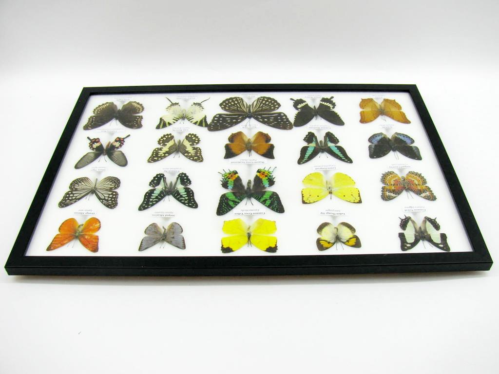 20 wunderschöne echte Schmetterlinge im schwarzen Rahmen als Wandbild – A-20-madam-05