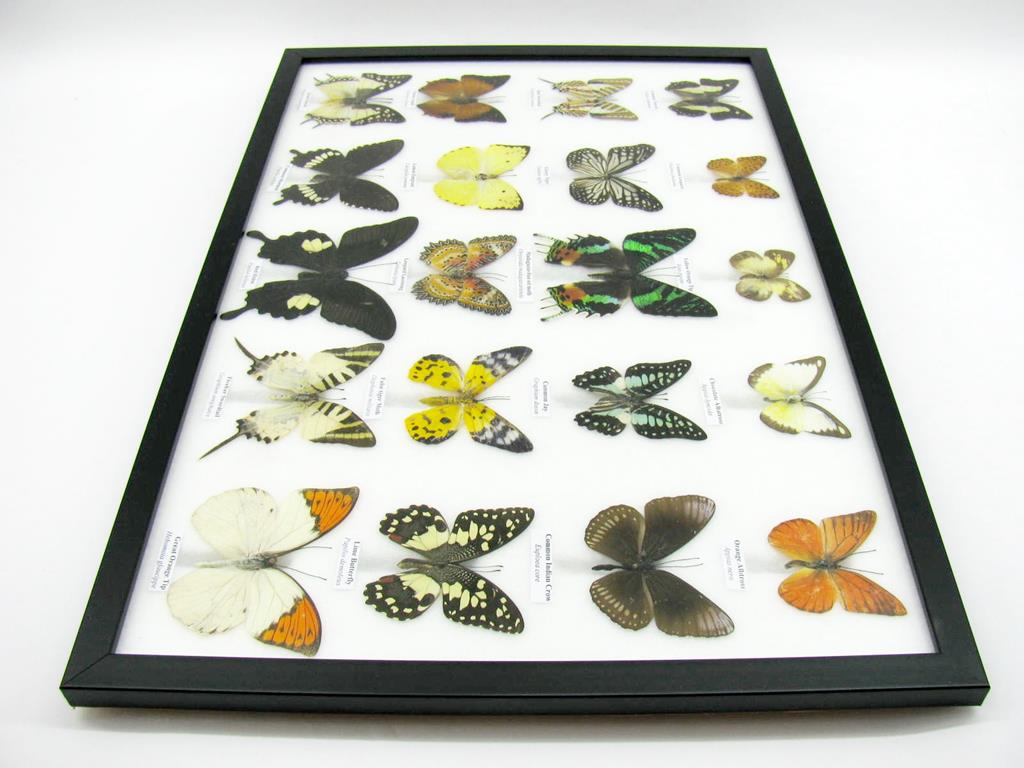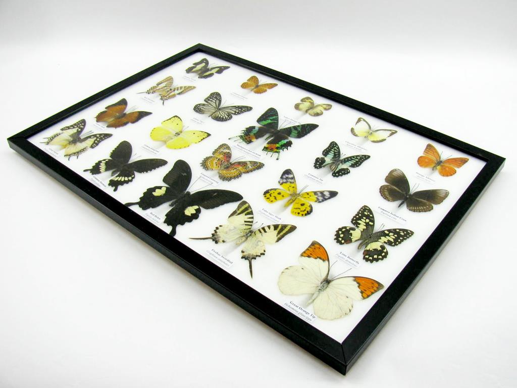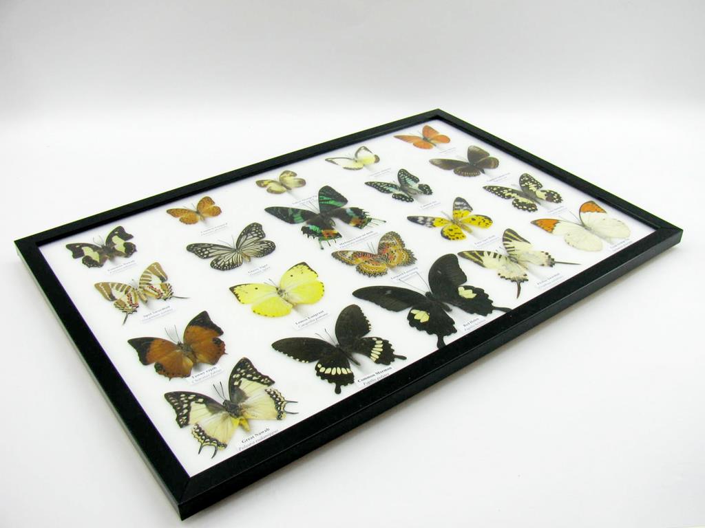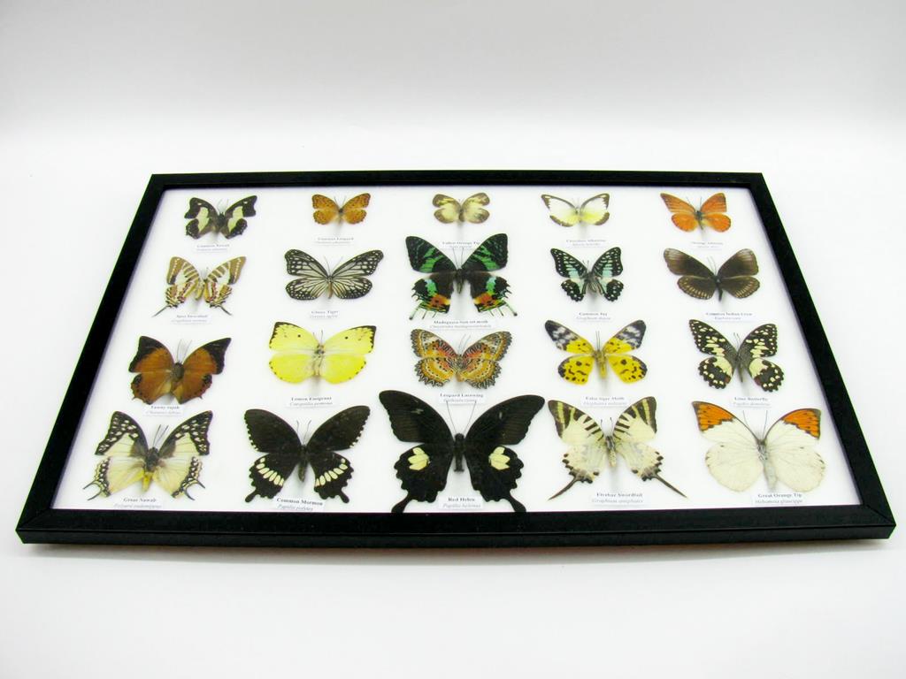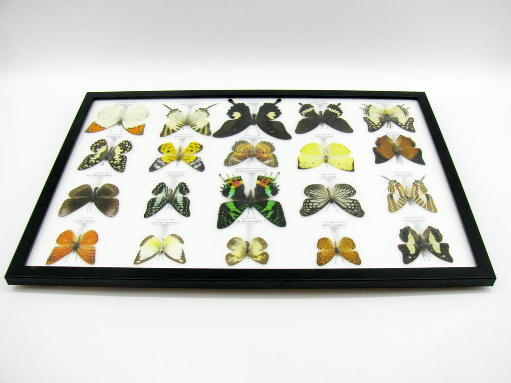 20 wunderschöne echte Schmetterlinge im schwarzen Rahmen als Wandbild – A-20-madam-08