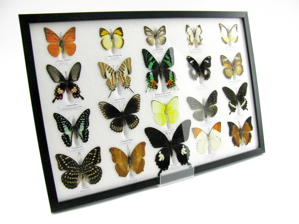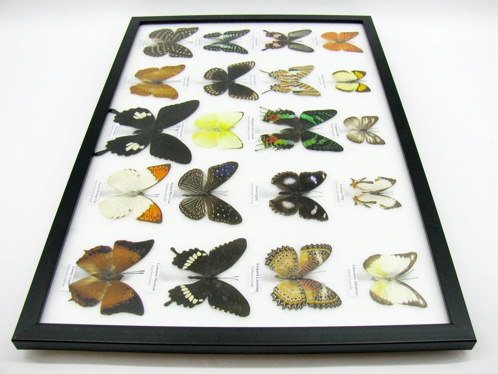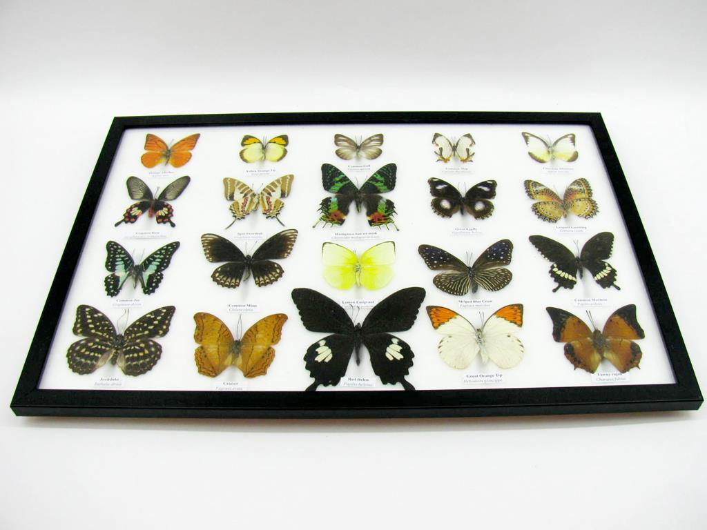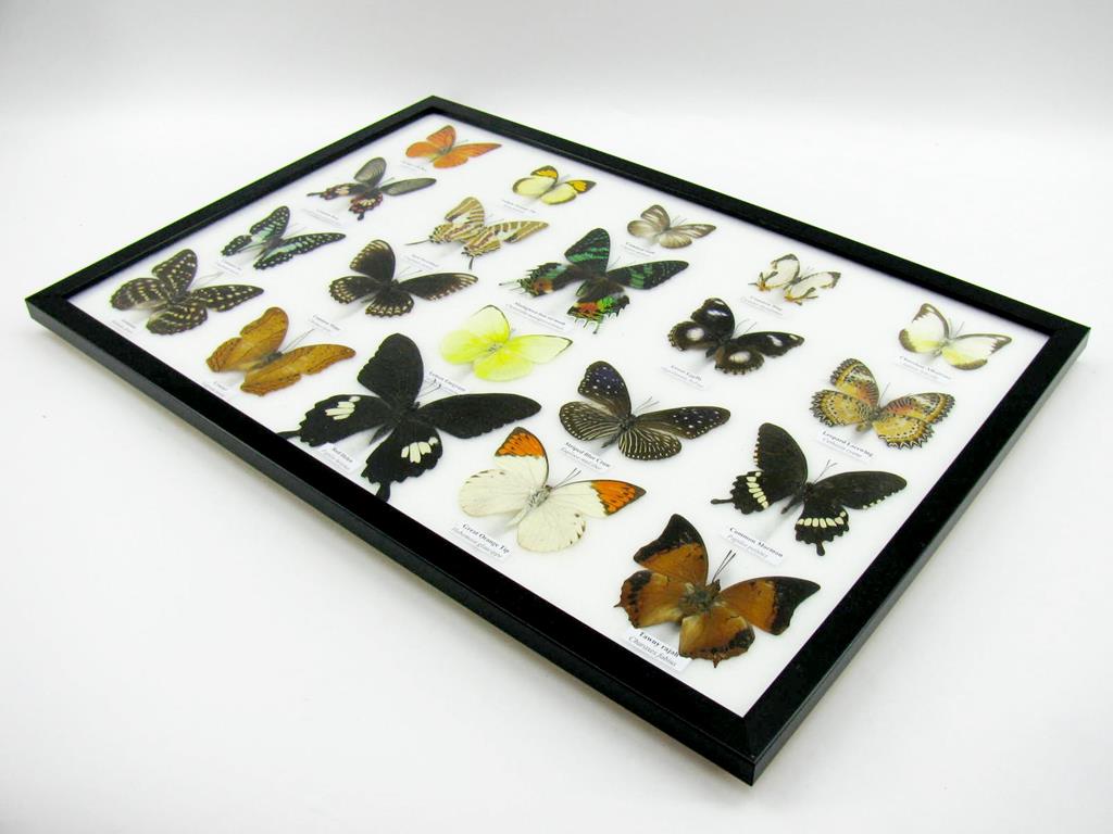 20 wunderschöne echte Schmetterlinge im schwarzen Rahmen als Wandbild – A-20-madam-01