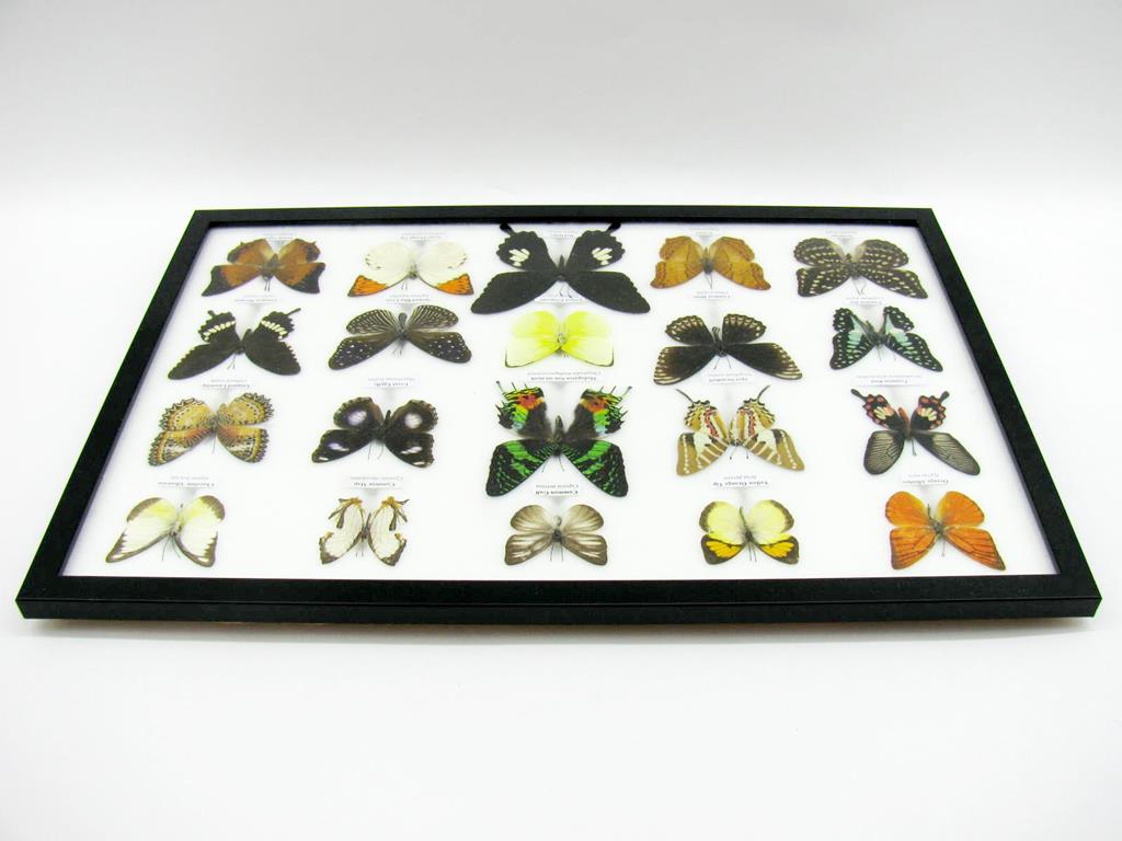 20 wunderschöne echte Schmetterlinge im schwarzen Rahmen als Wandbild – A-20-madam-12