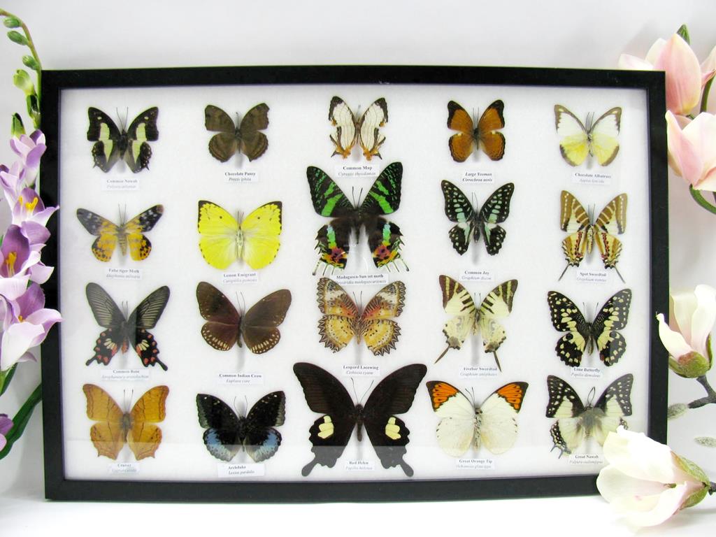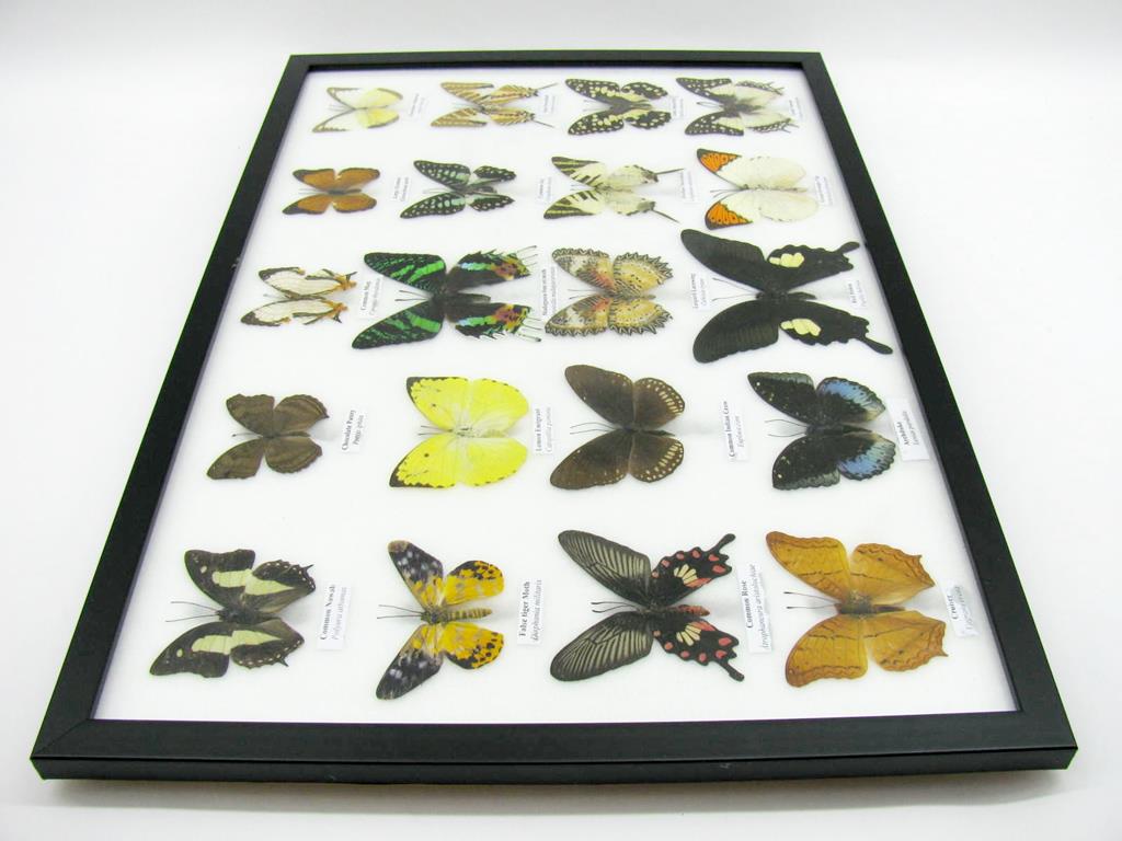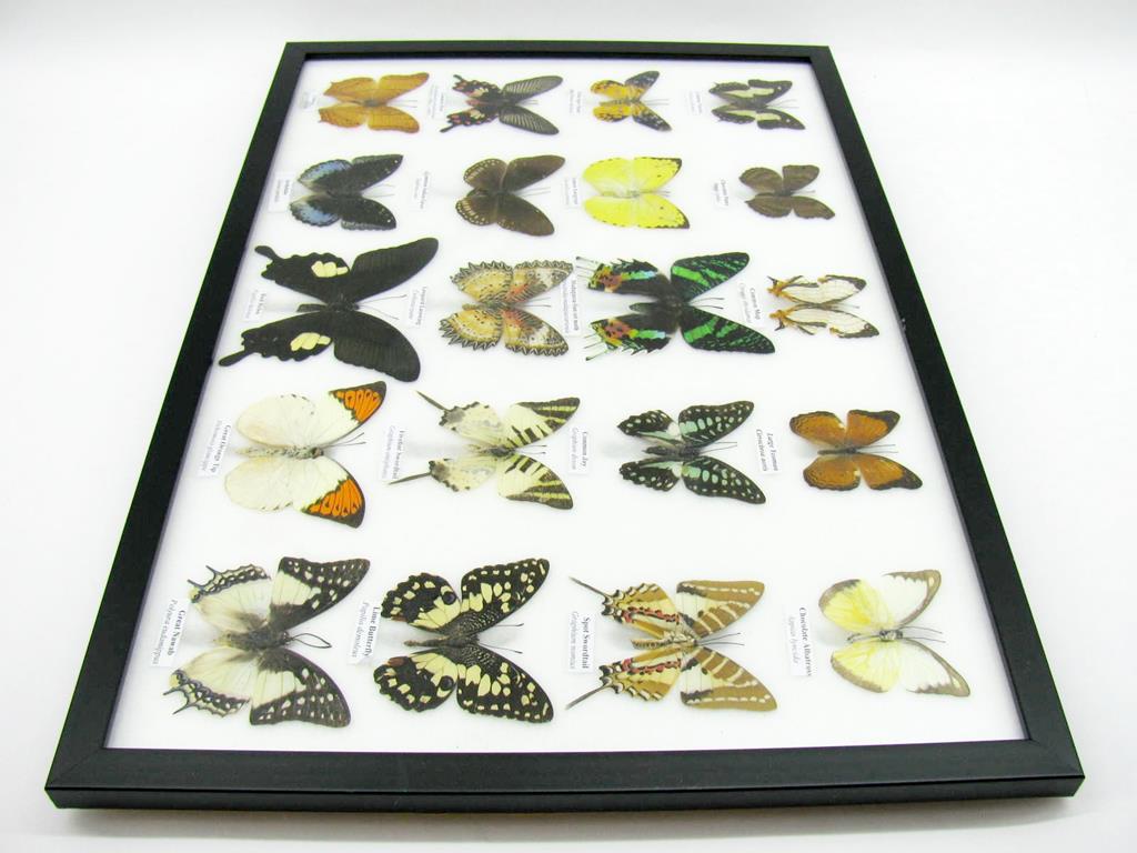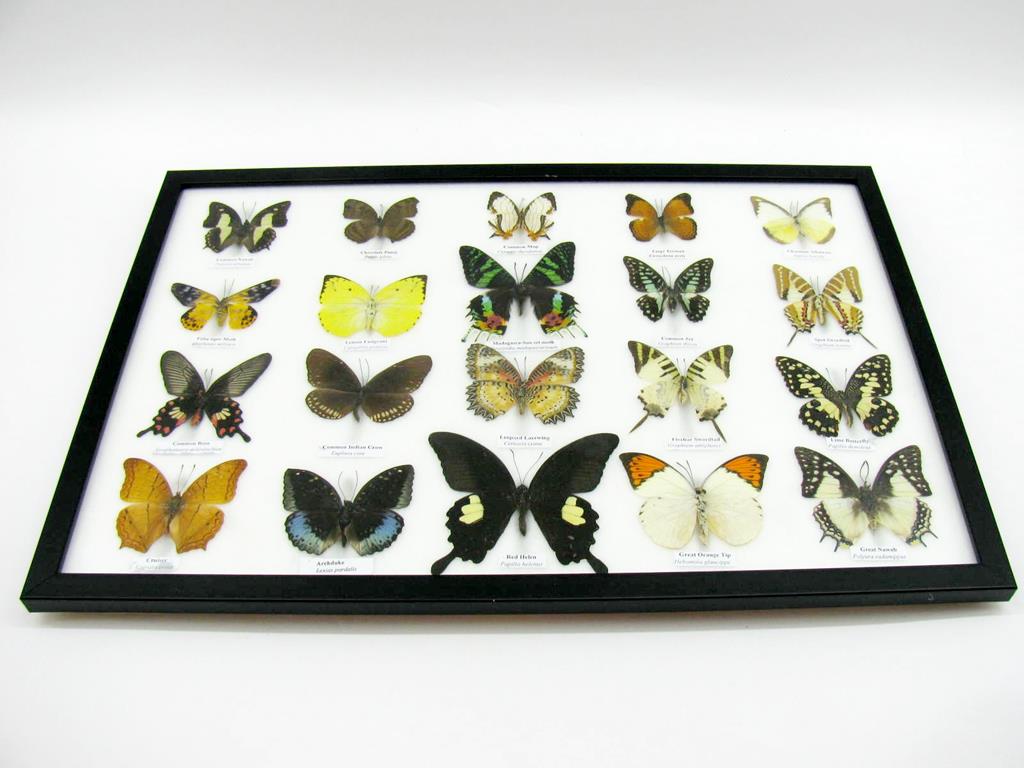 20 wunderschöne echte Schmetterlinge im schwarzen Rahmen als Wandbild – A-20-madam-14