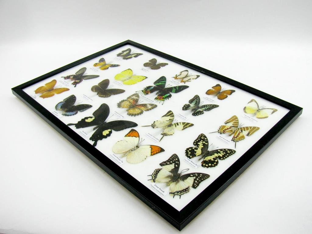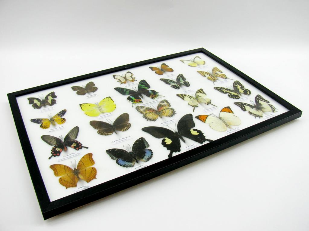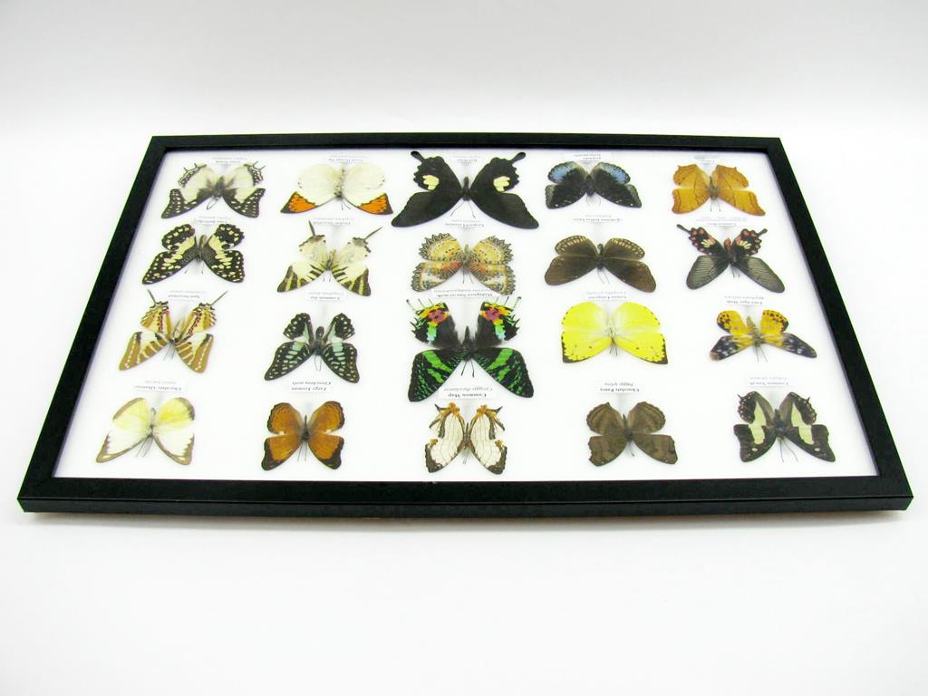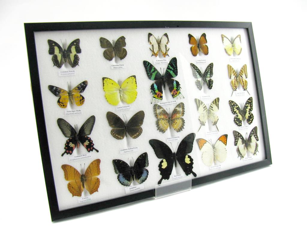 20 wunderschöne echte Schmetterlinge im schwarzen Rahmen als Wandbild – A-20-madam-14