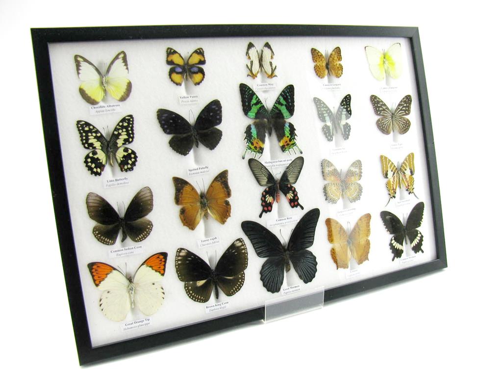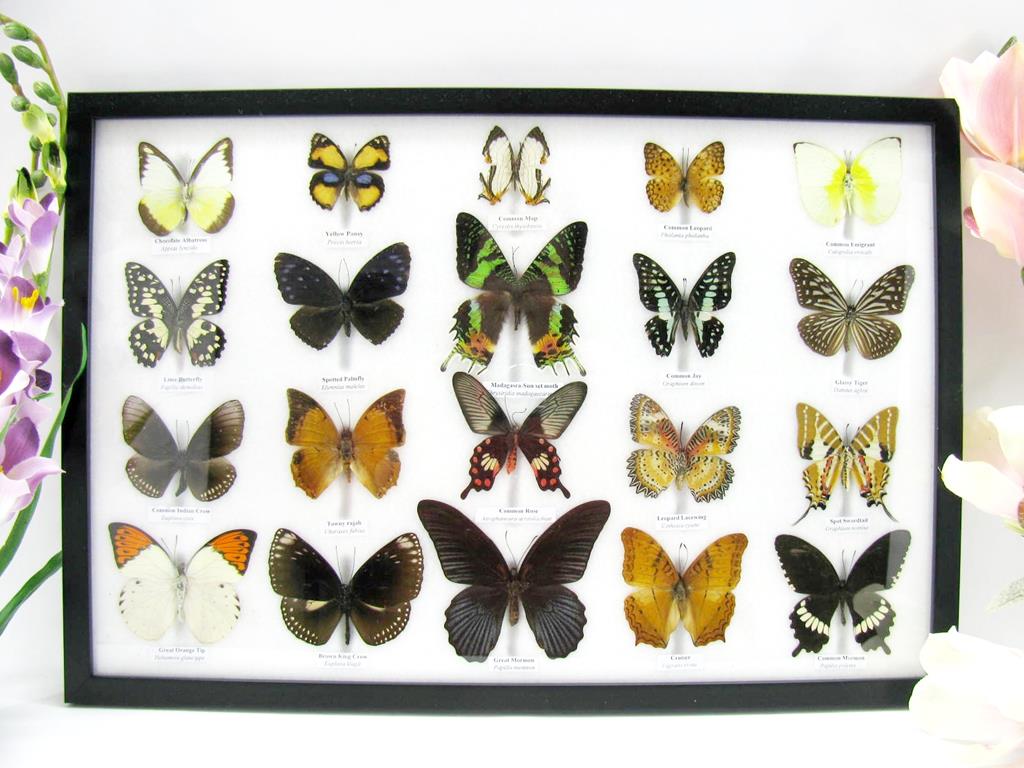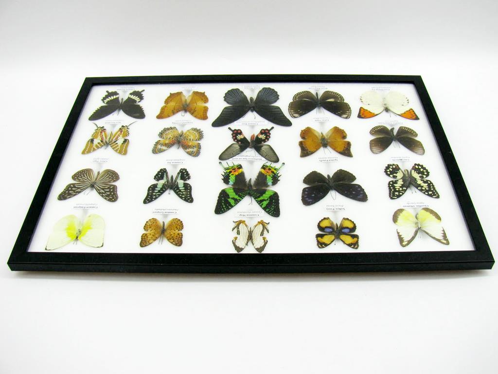 20 wunderschöne echte Schmetterlinge im schwarzen Rahmen als Wandbild – A-20-madam-13
