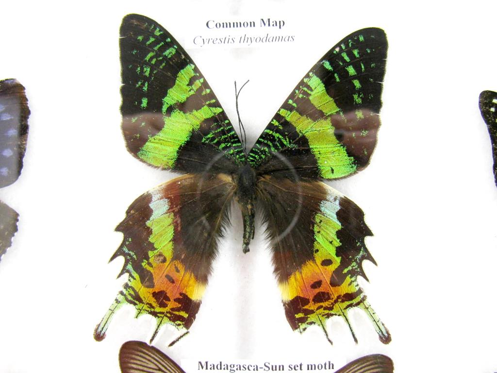 Wunderschöne, echte, präparierte Schmetterlinge als Wandbild im Schaukasten in perfekter Museumsqualität kaufen Sie hier