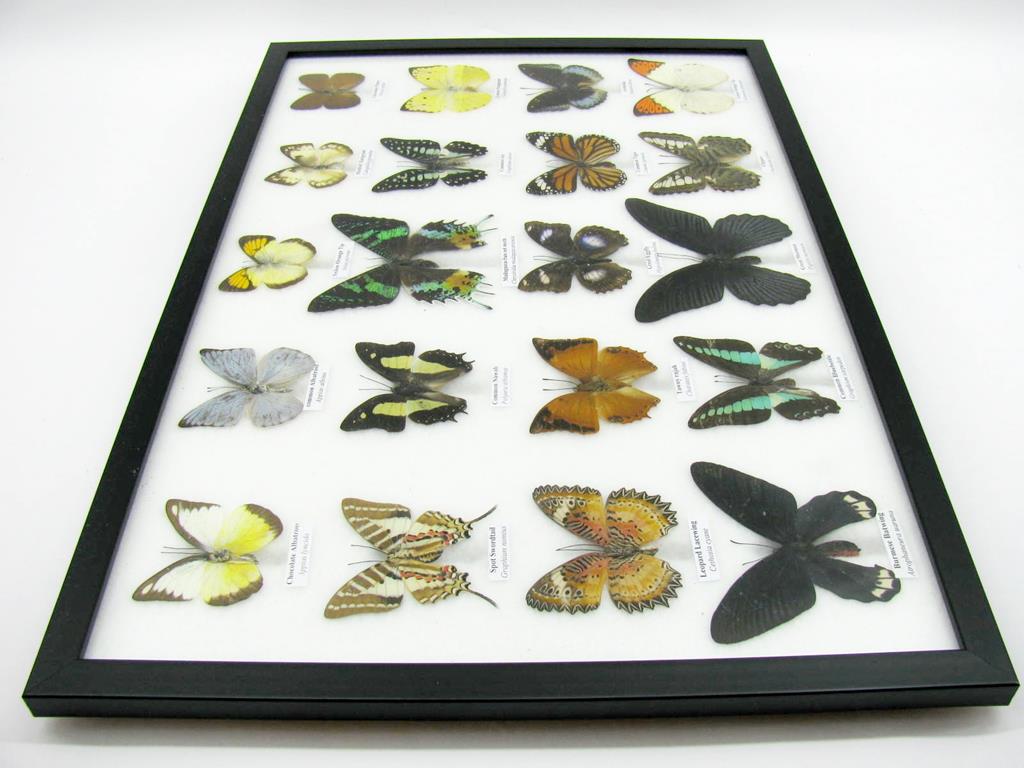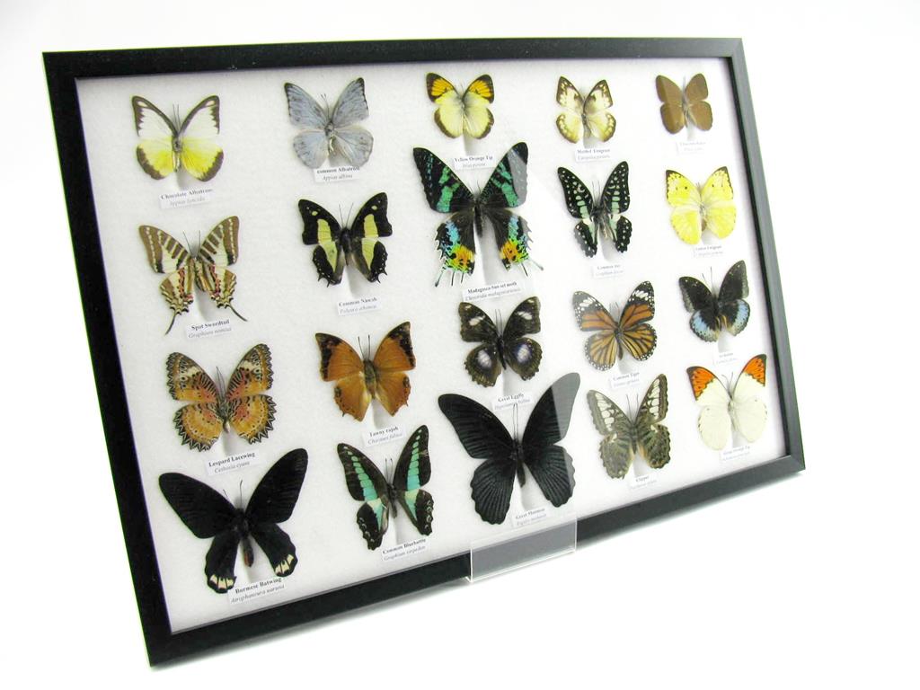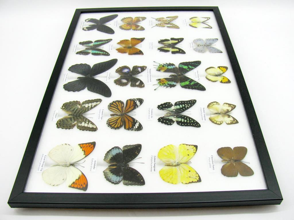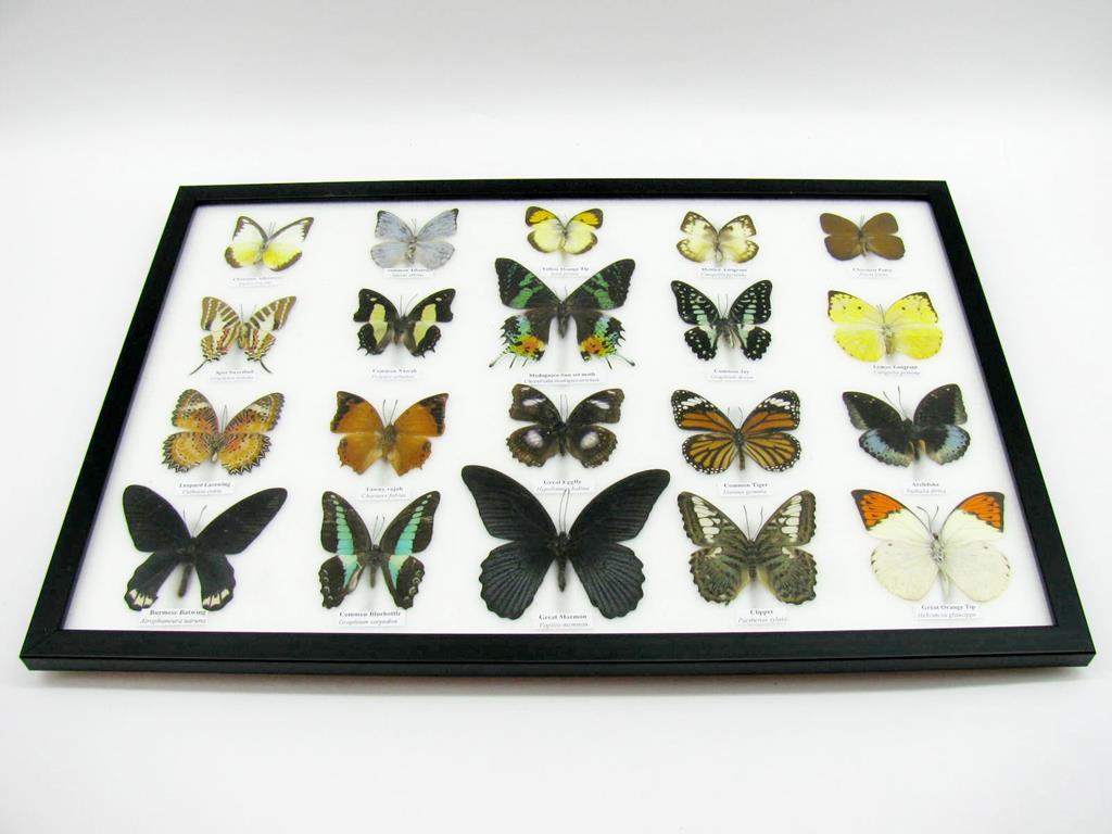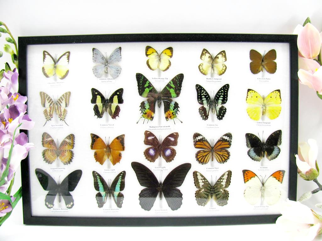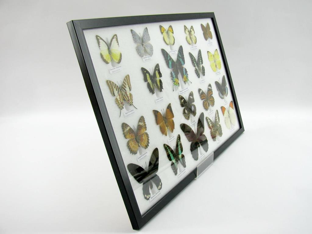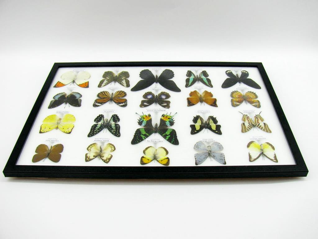 20 wunderschöne echte Schmetterlinge im schwarzen Rahmen als Wandbild – A-20-madam-16