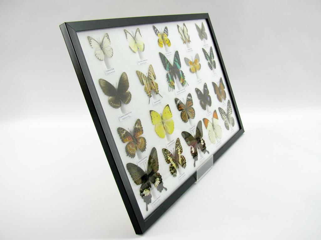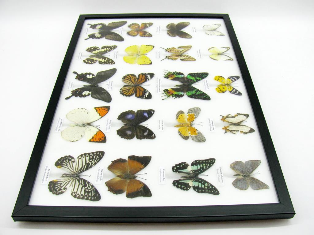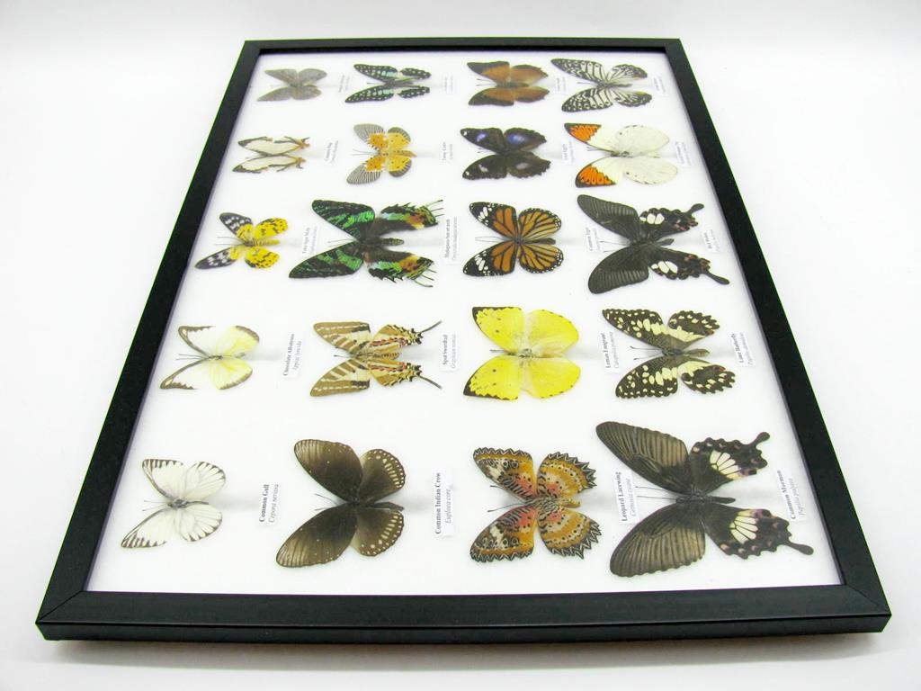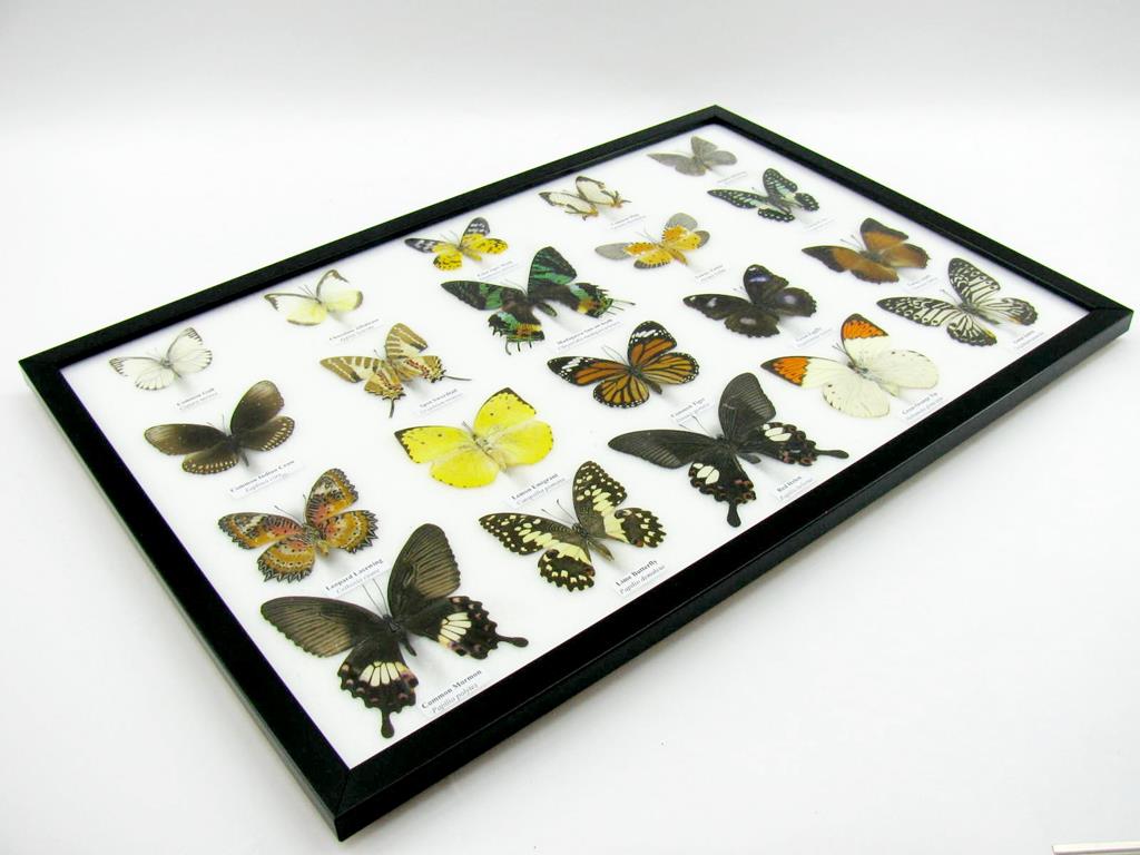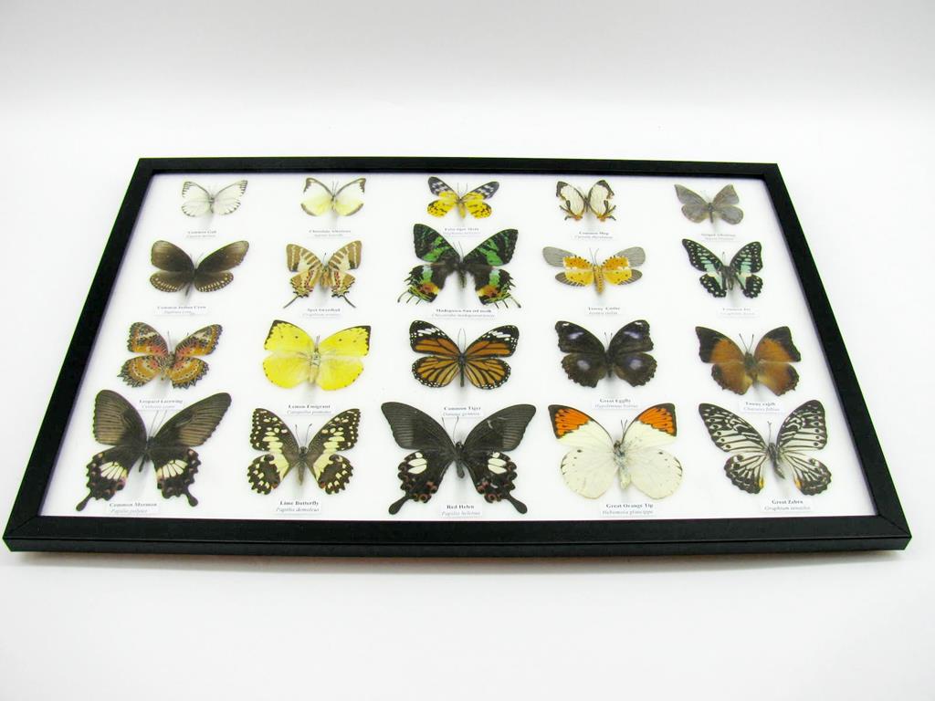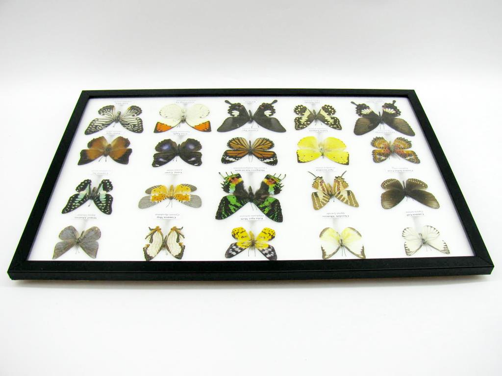 20 wunderschöne echte Schmetterlinge im schwarzen Rahmen als Wandbild – A-20-madam-17