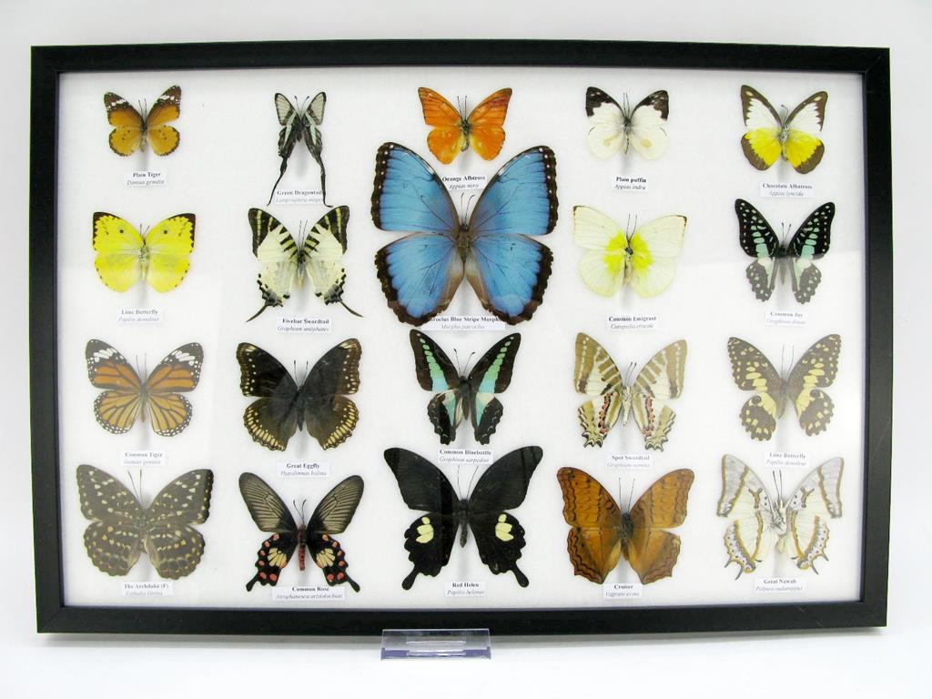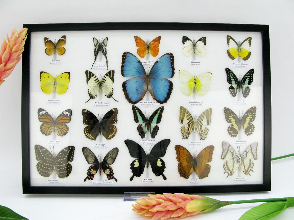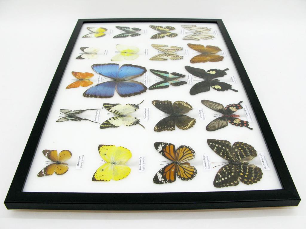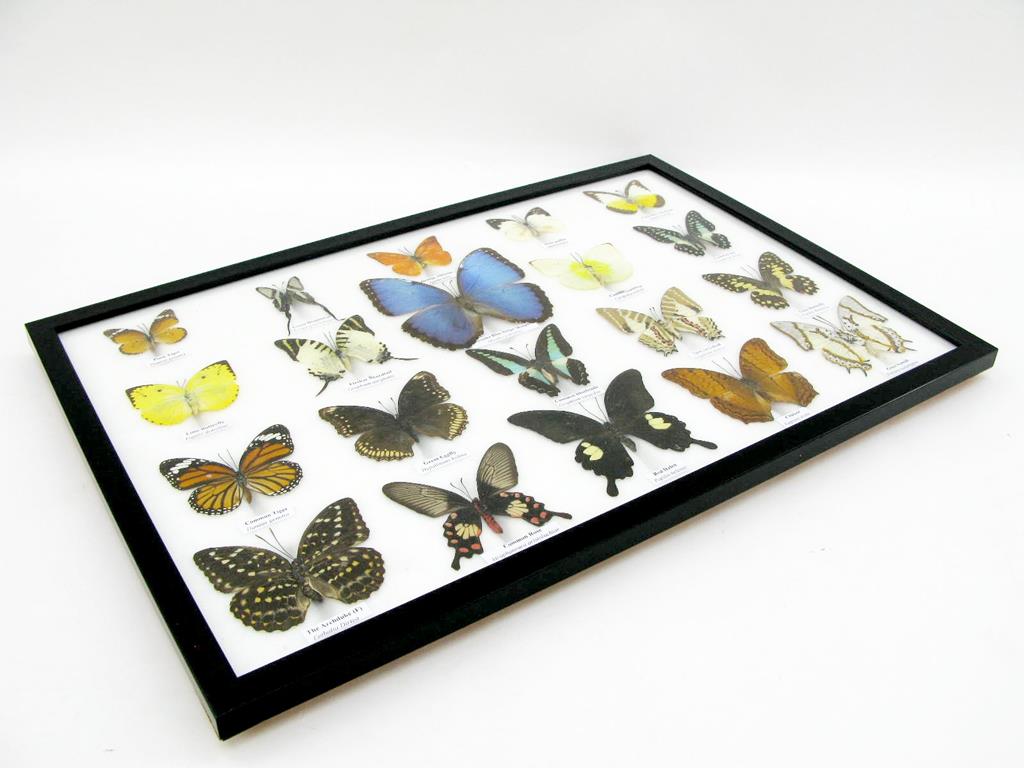 20 wunderschöne echte Schmetterlinge im schwarzen Rahmen als Wandbild – A-20-madam-08