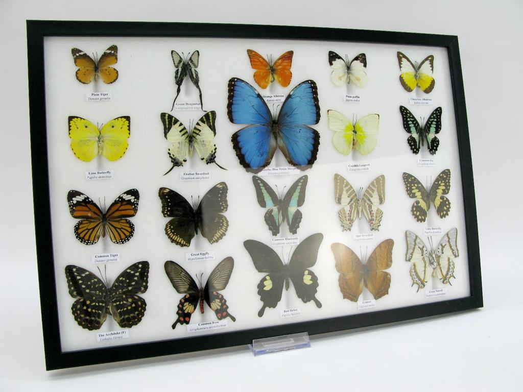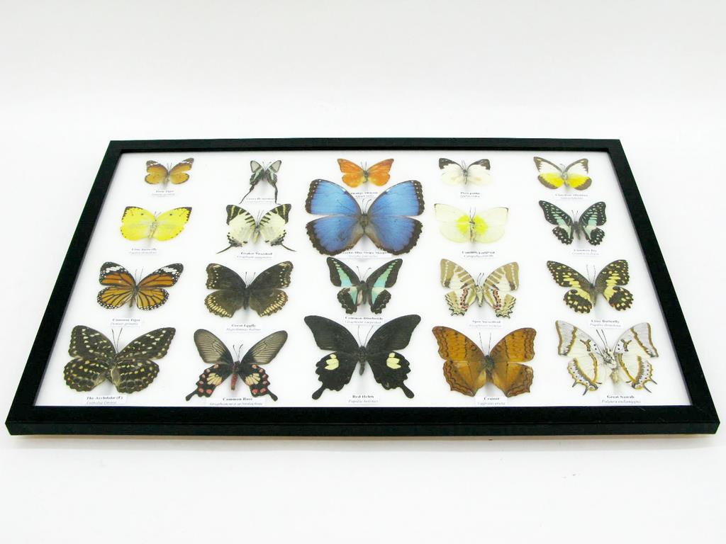 20 wunderschöne echte Schmetterlinge im schwarzen Rahmen als Wandbild – A-20-madam-01