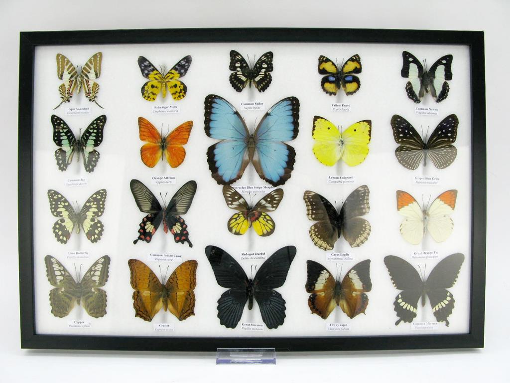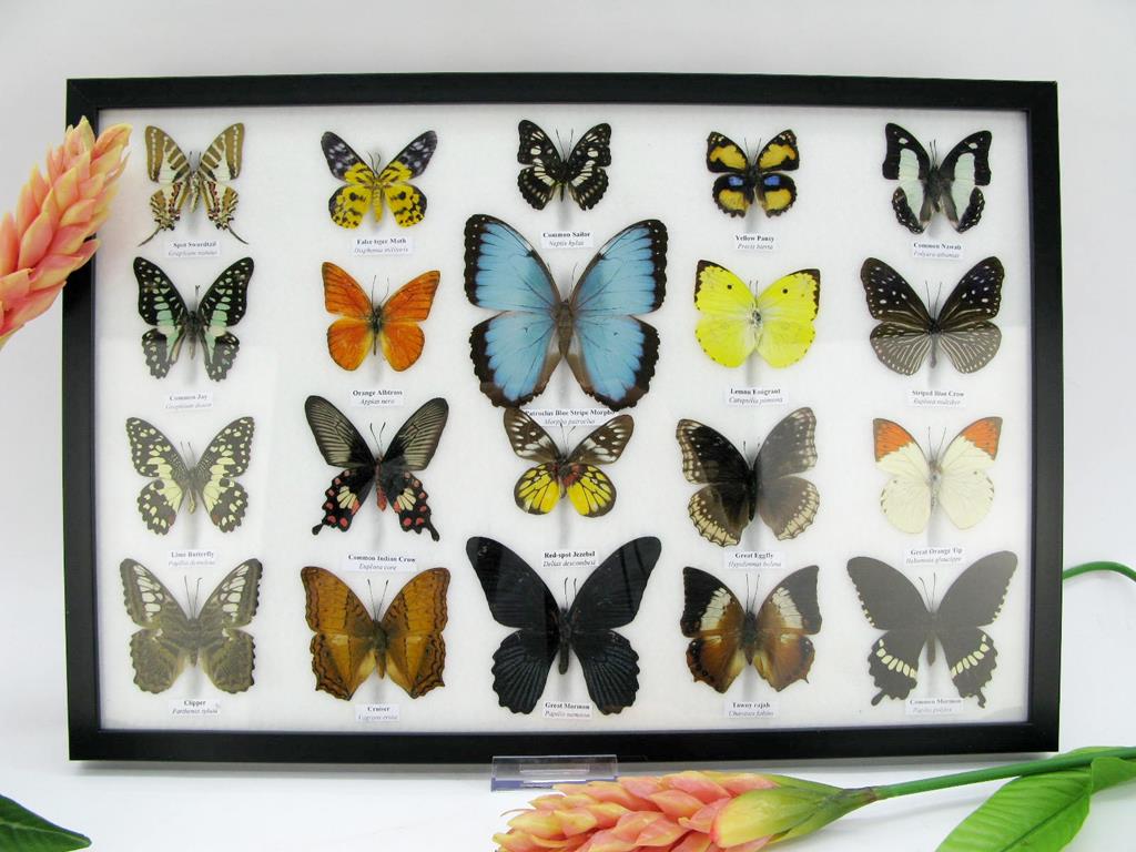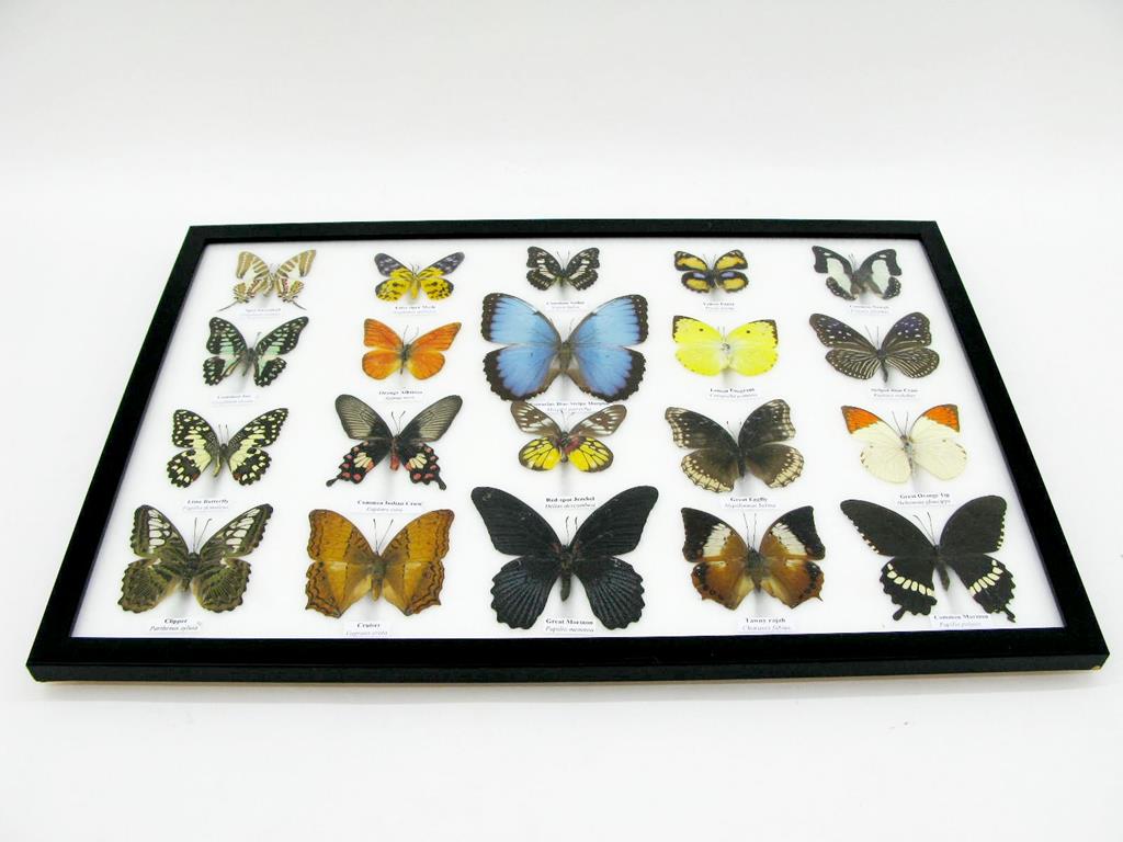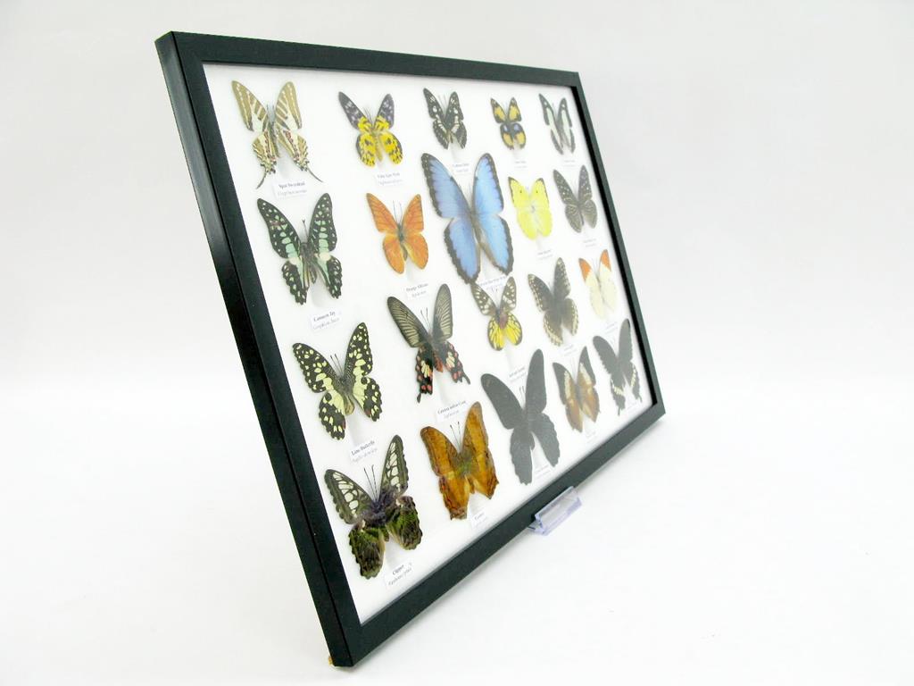 20 wunderschöne echte Schmetterlinge im schwarzen Rahmen als Wandbild – A-20-madam-09