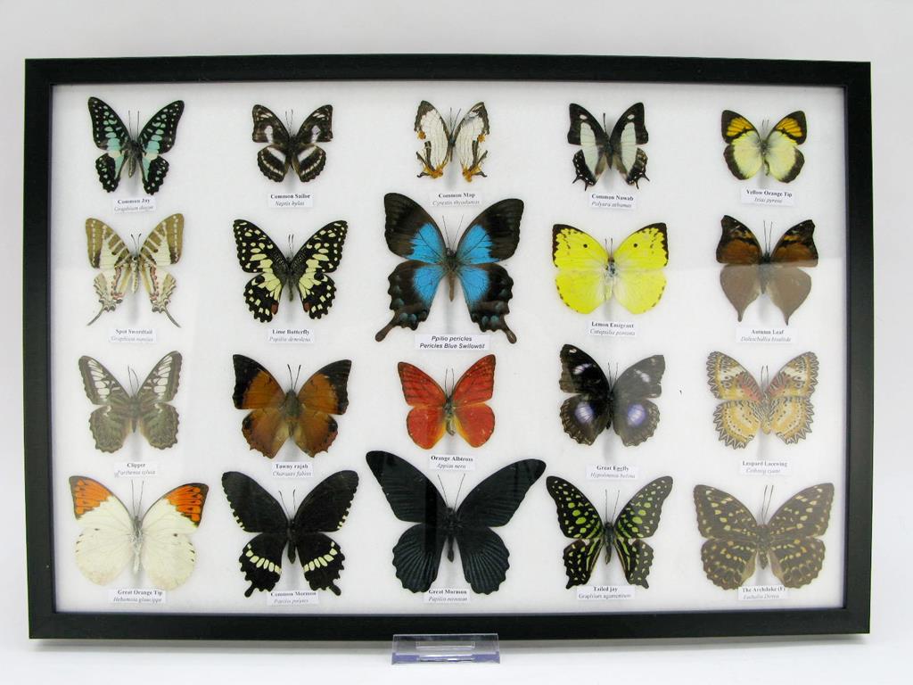 20 wunderschöne echte Schmetterlinge im schwarzen Rahmen als Wandbild – A-20-madam-01