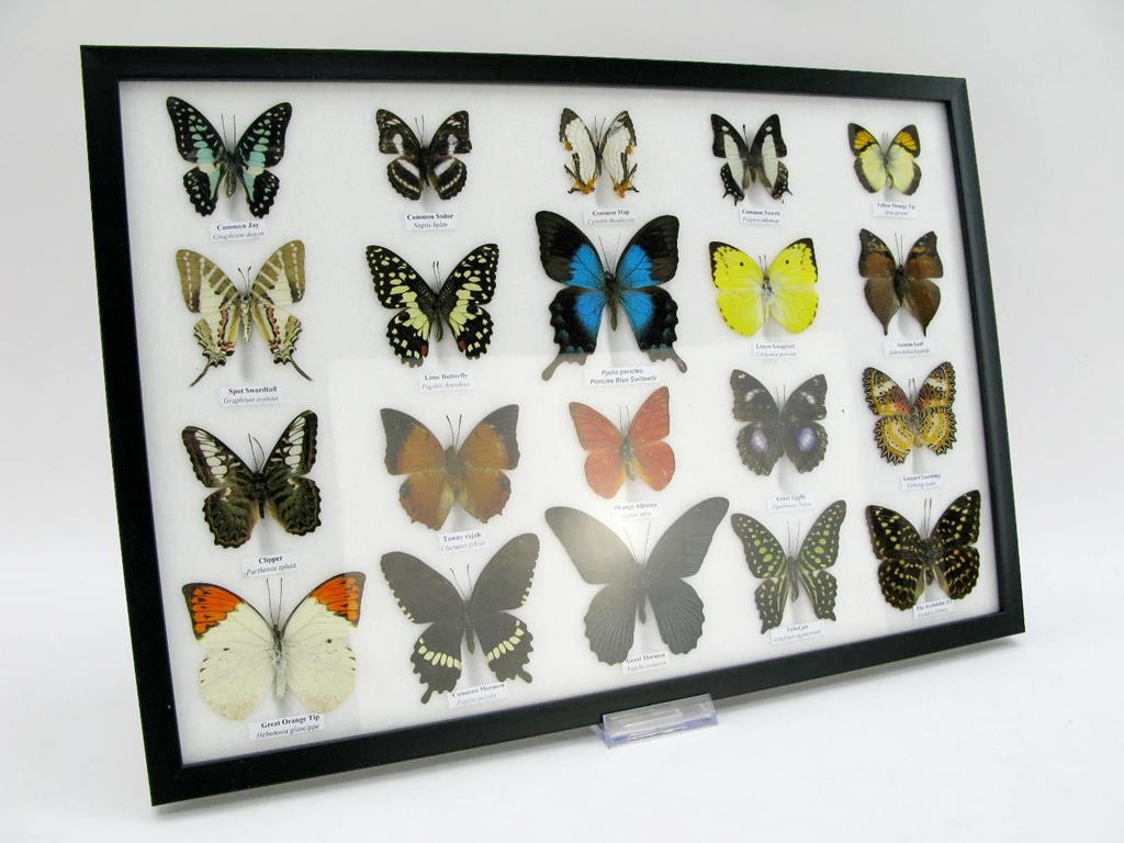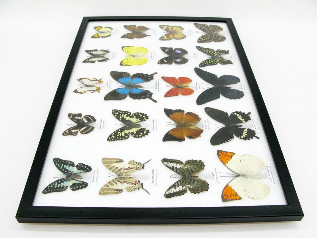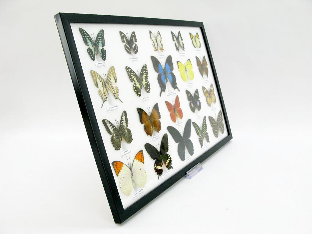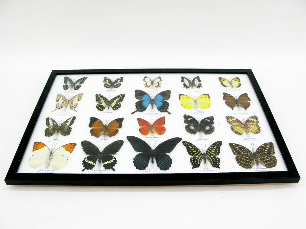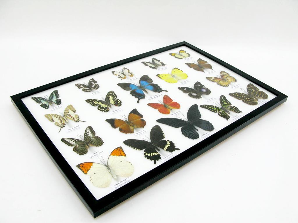 20 wunderschöne echte Schmetterlinge im schwarzen Rahmen als Wandbild – A-20-madam-08