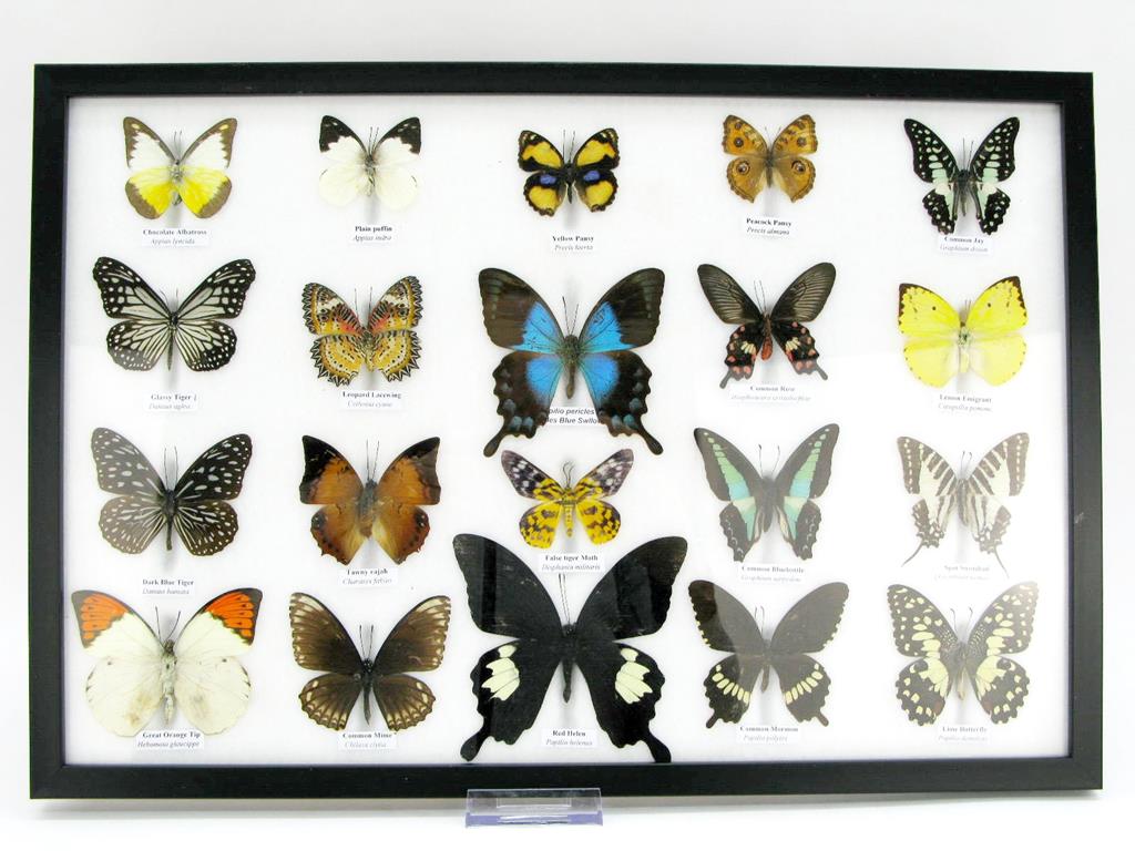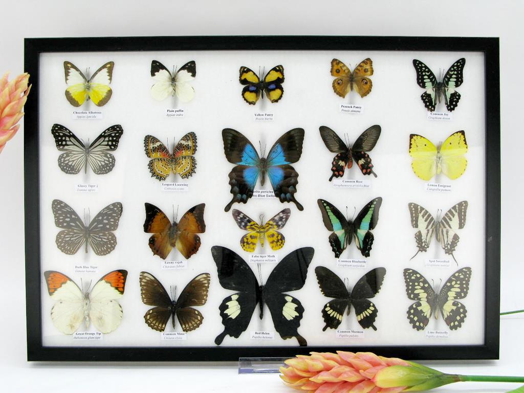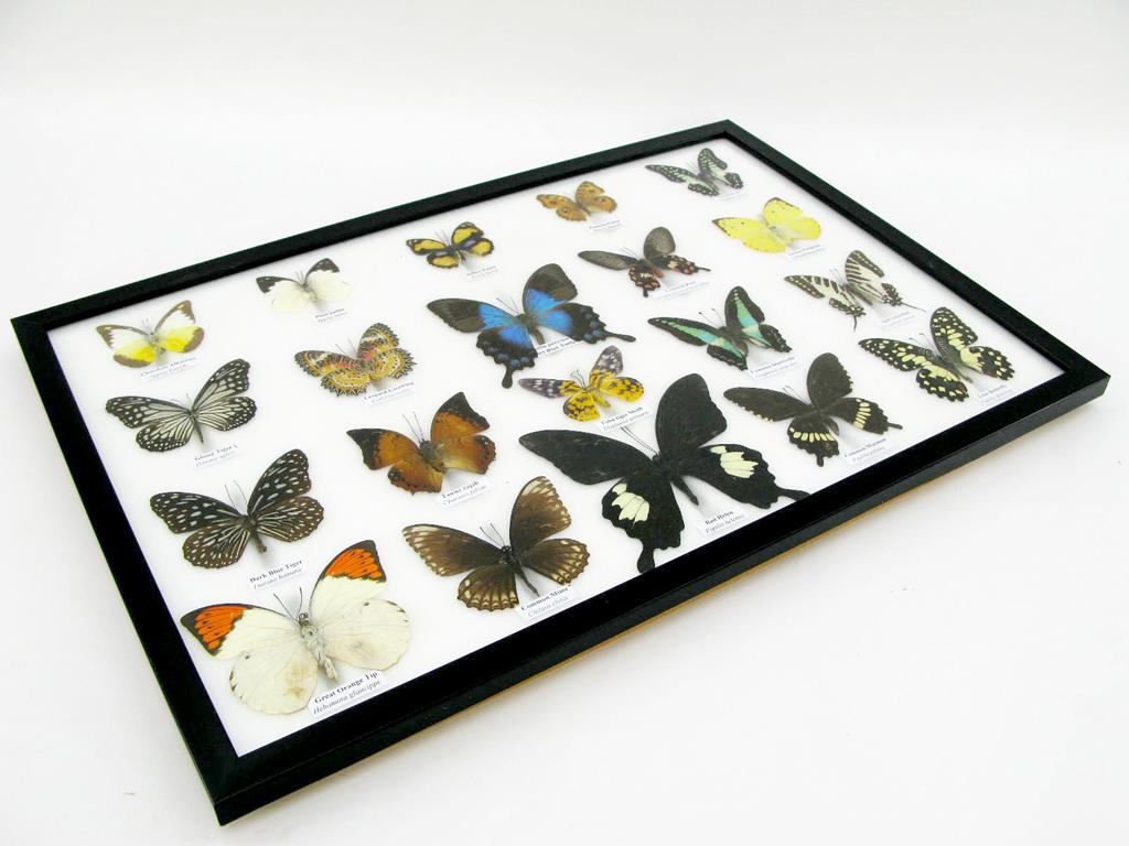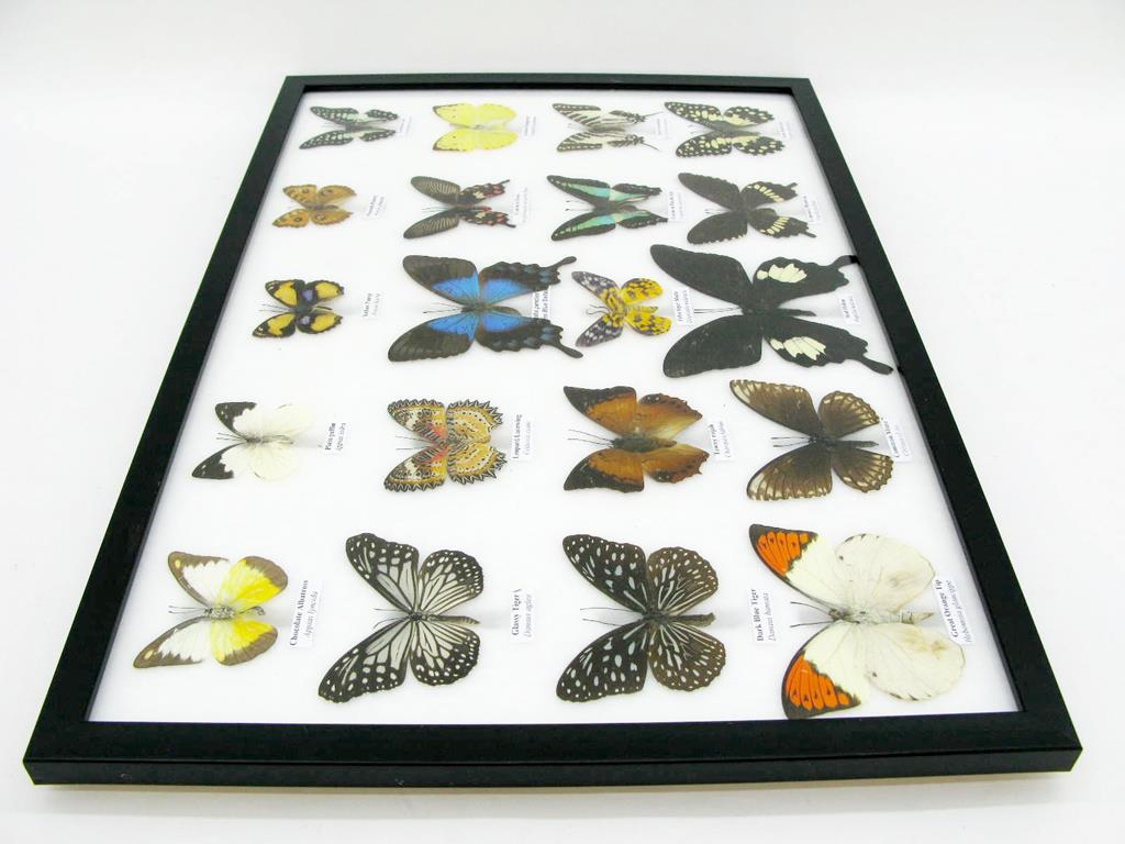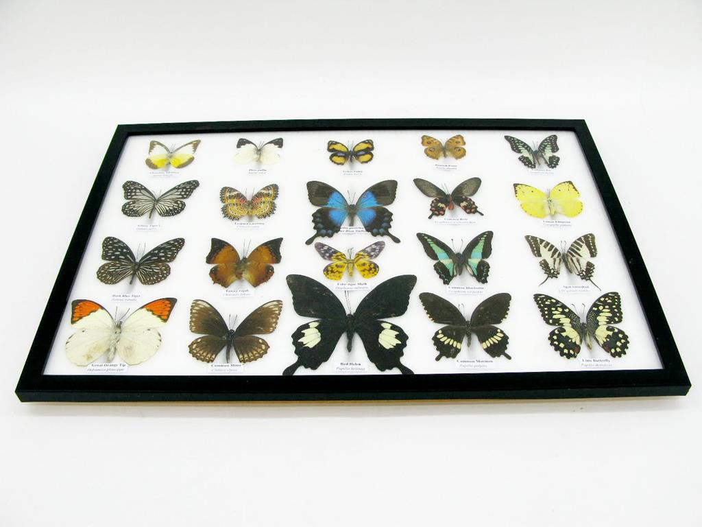 20 wunderschöne echte Schmetterlinge im schwarzen Rahmen als Wandbild – A-20-madam-13
