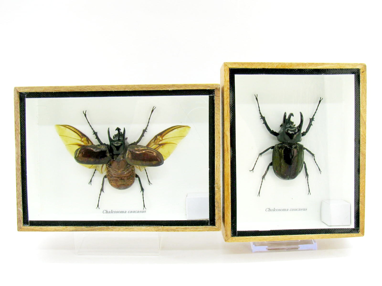 2x Cholcosoma caucasus – Atlas Beetle – im 3D Schaukasten – große Insekten