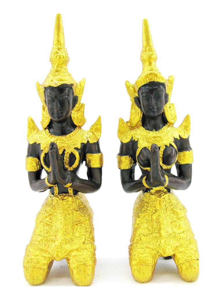 2x schwarz-goldene Tempelwächter – Teppanom (Thepphanom) weiblich männlich – Größe Medium