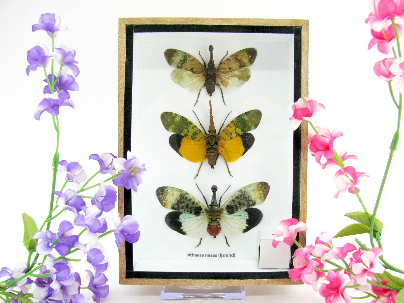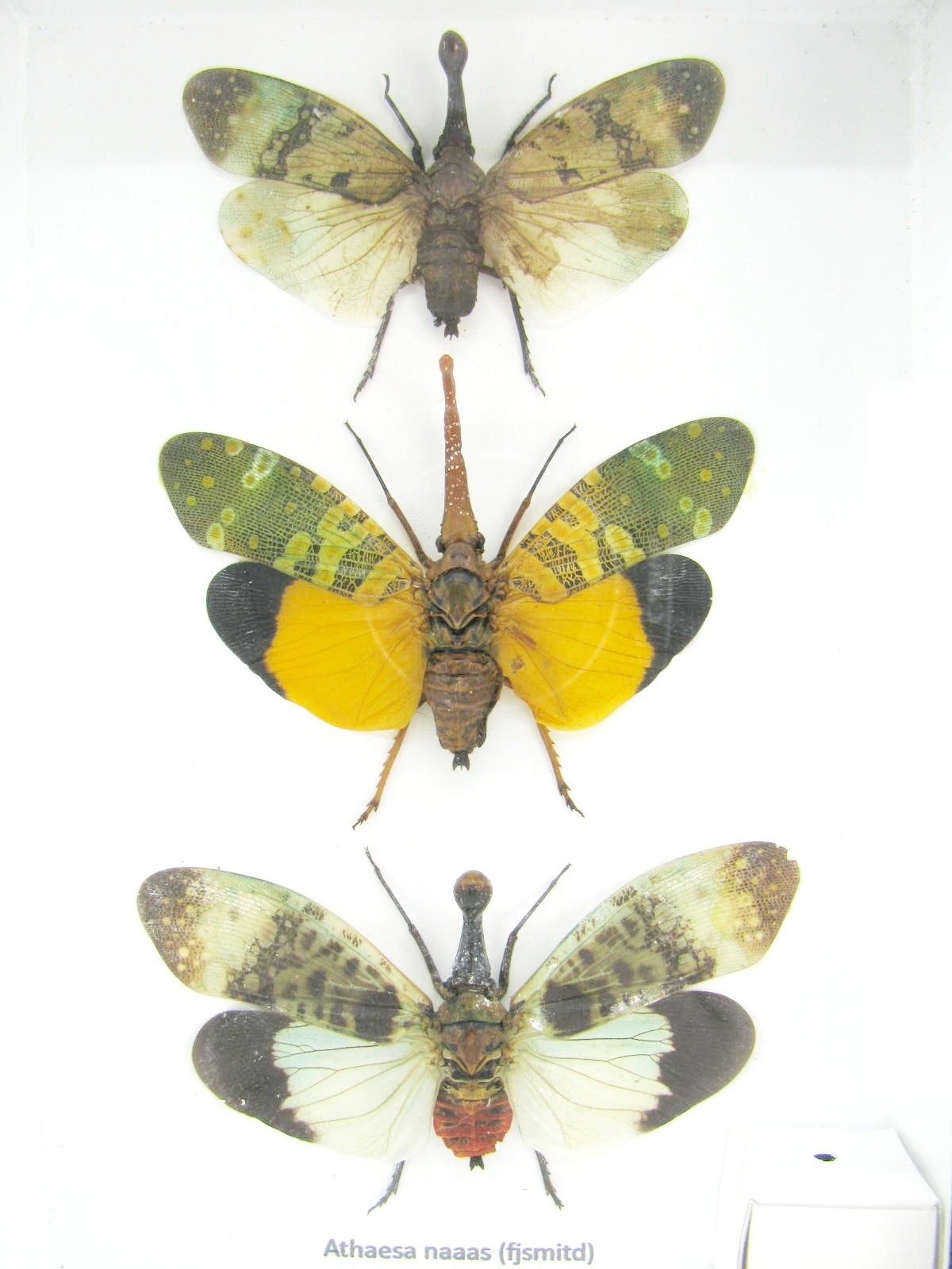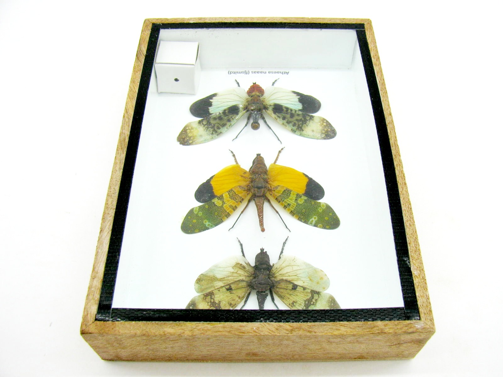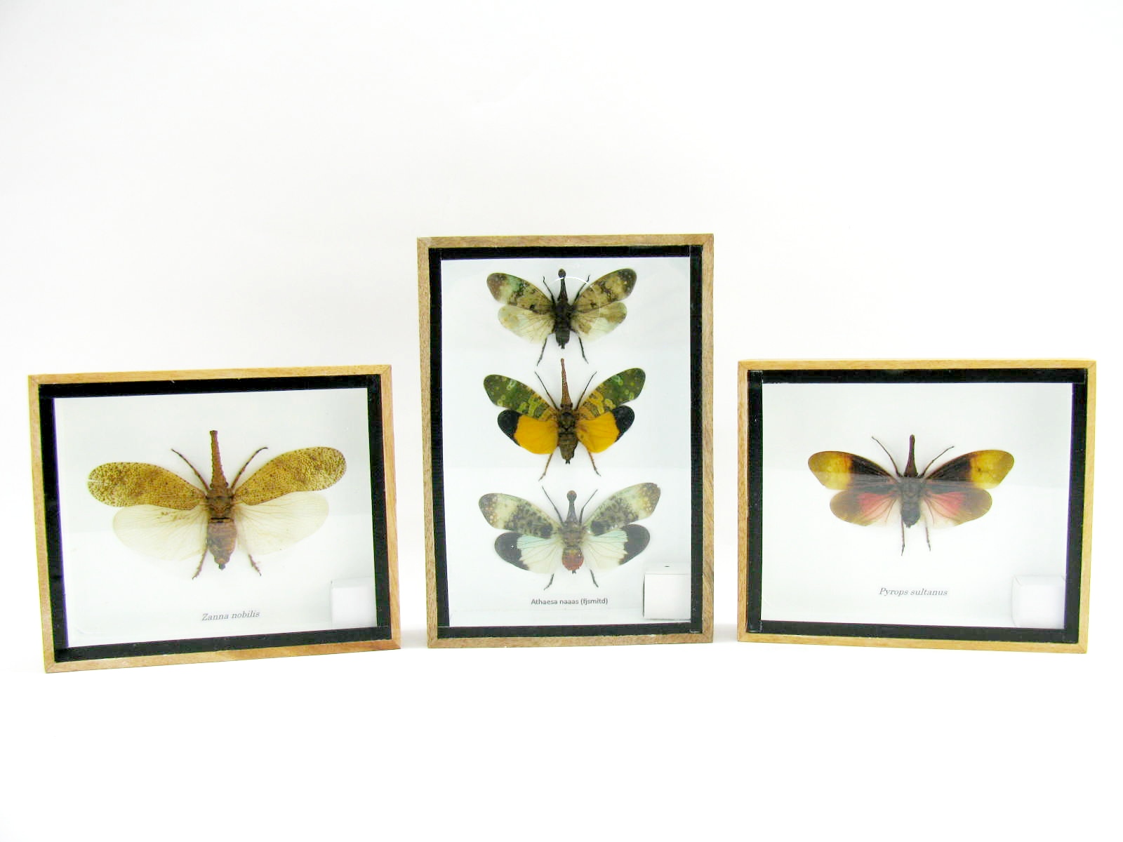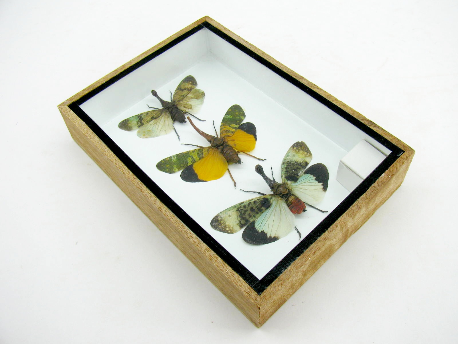 3x Lanternfly – Athaesa naaas – echte tropische Insekten – im 3D Schaukasten – Wandbild