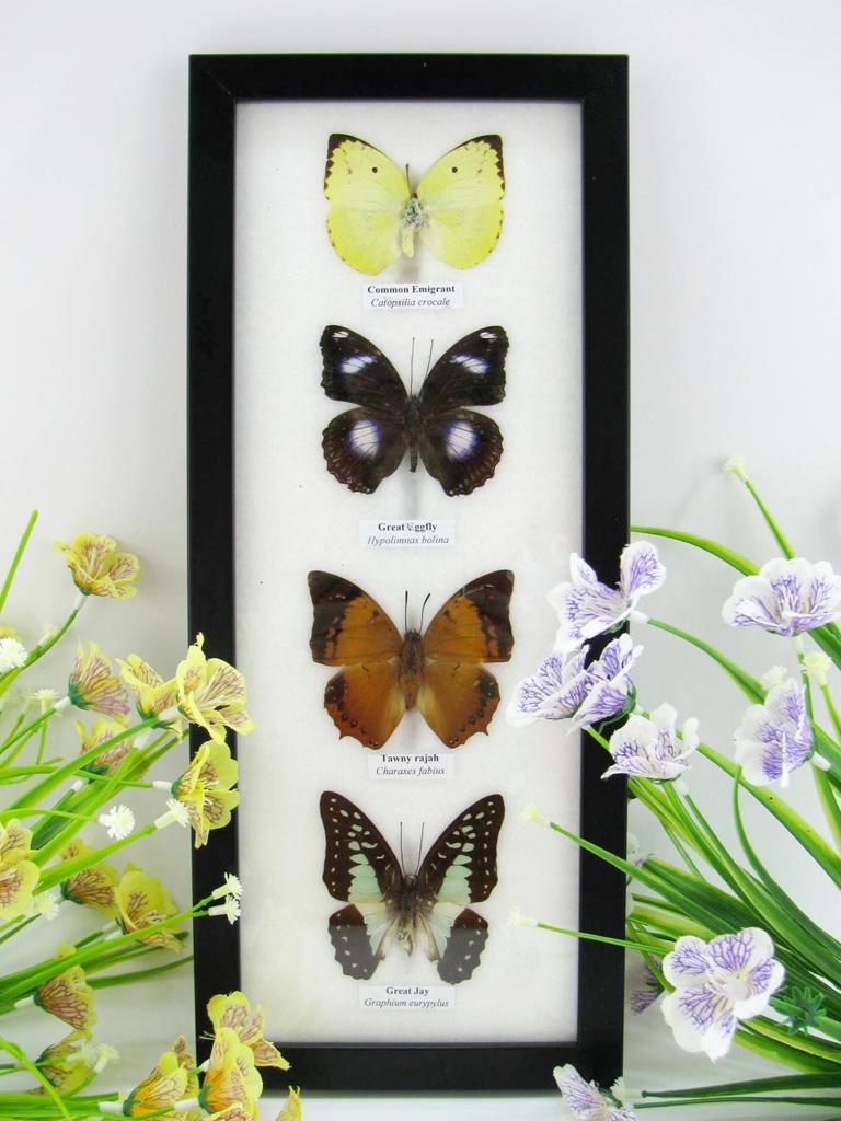 4 wunderschöne echte Schmetterlinge im Bilderrahmen – A-04-h-04