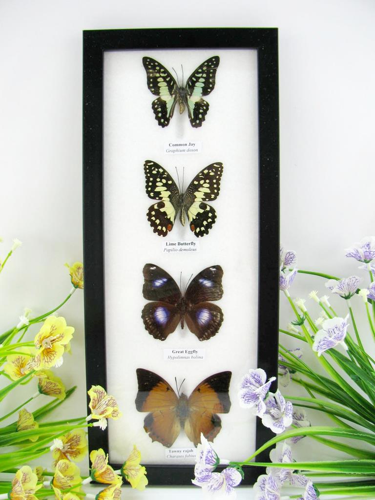 4 wunderschöne echte Schmetterlinge im Bilderrahmen – A-04-h-04