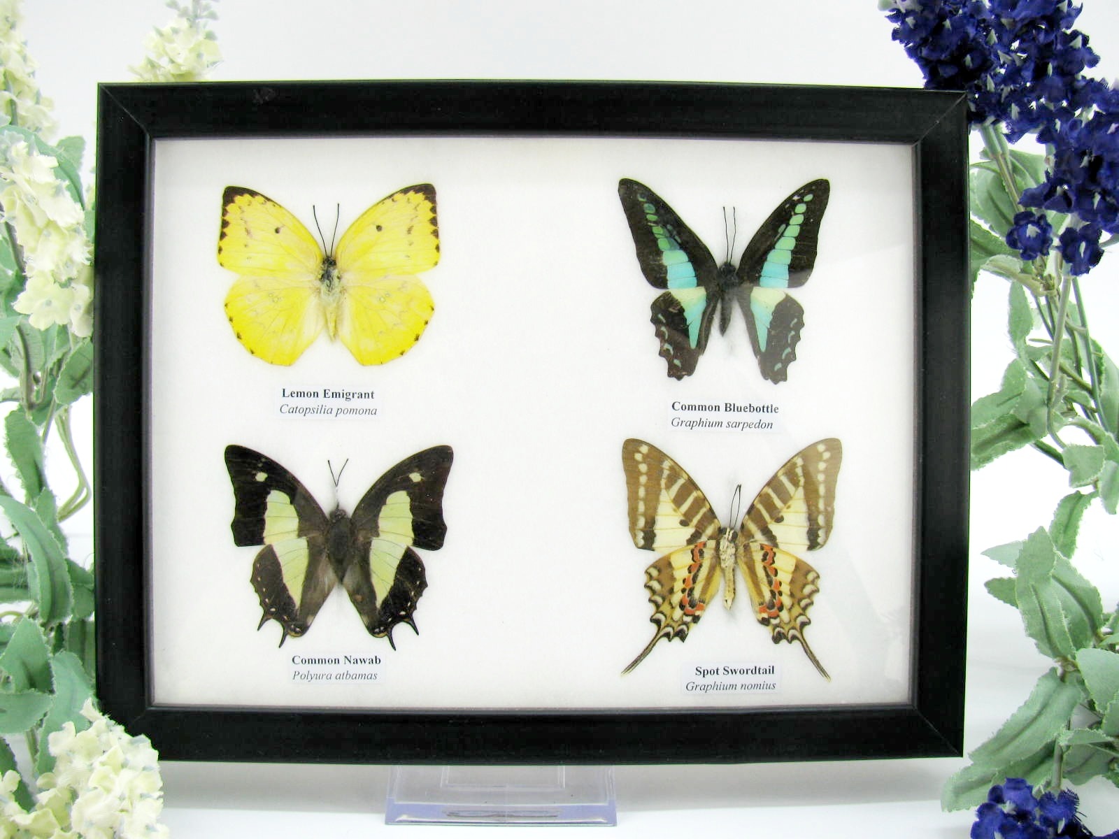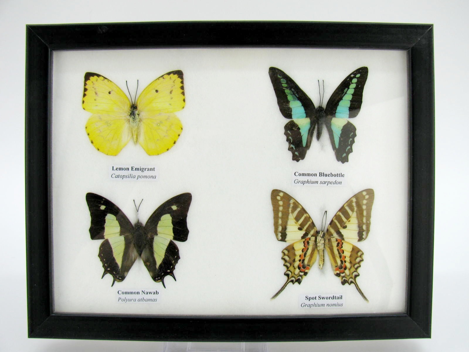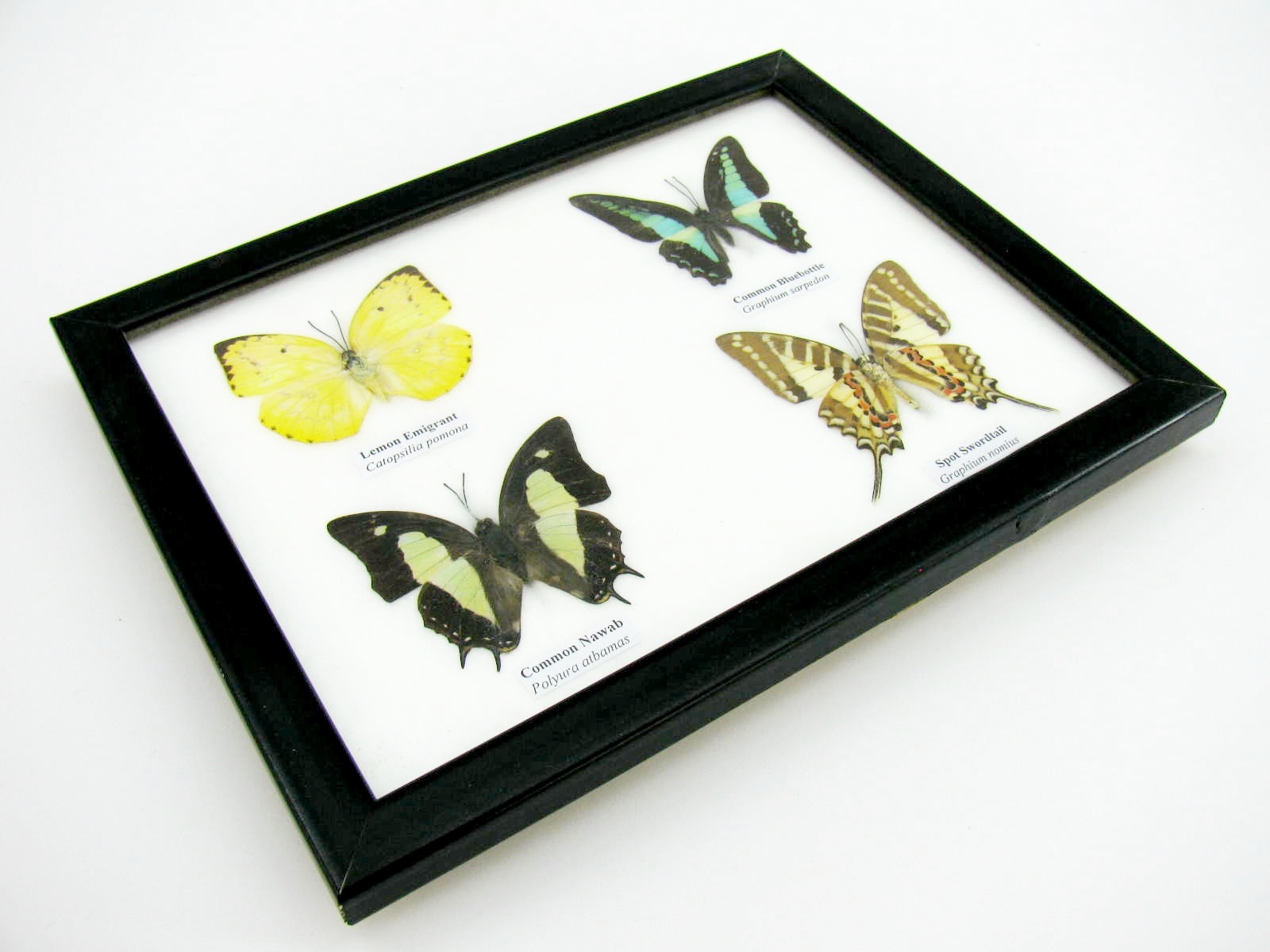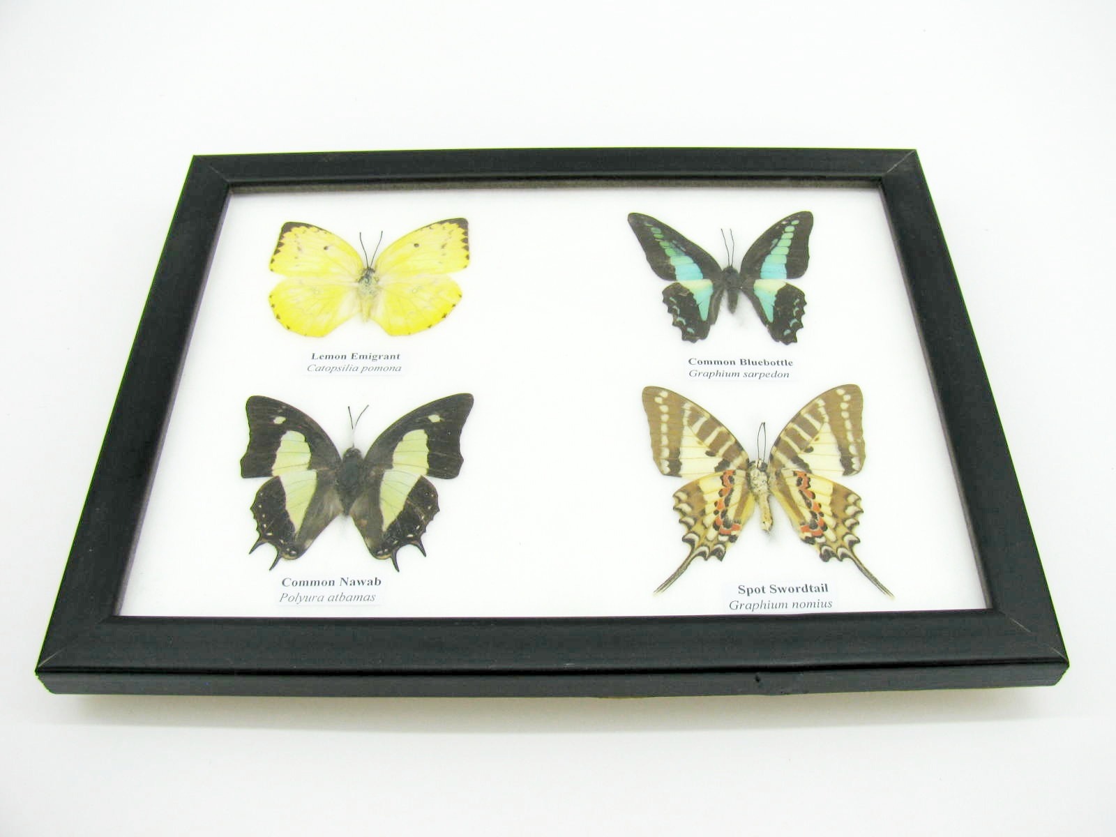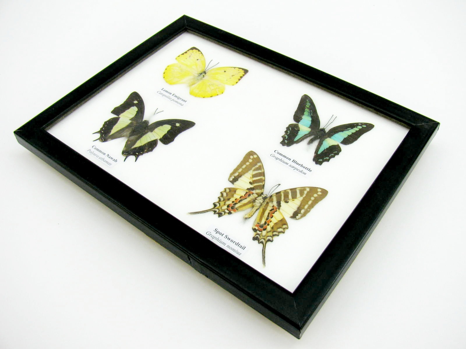 4 wunderschöne echte Schmetterlinge im Bilderrahmen – A-04-h-11