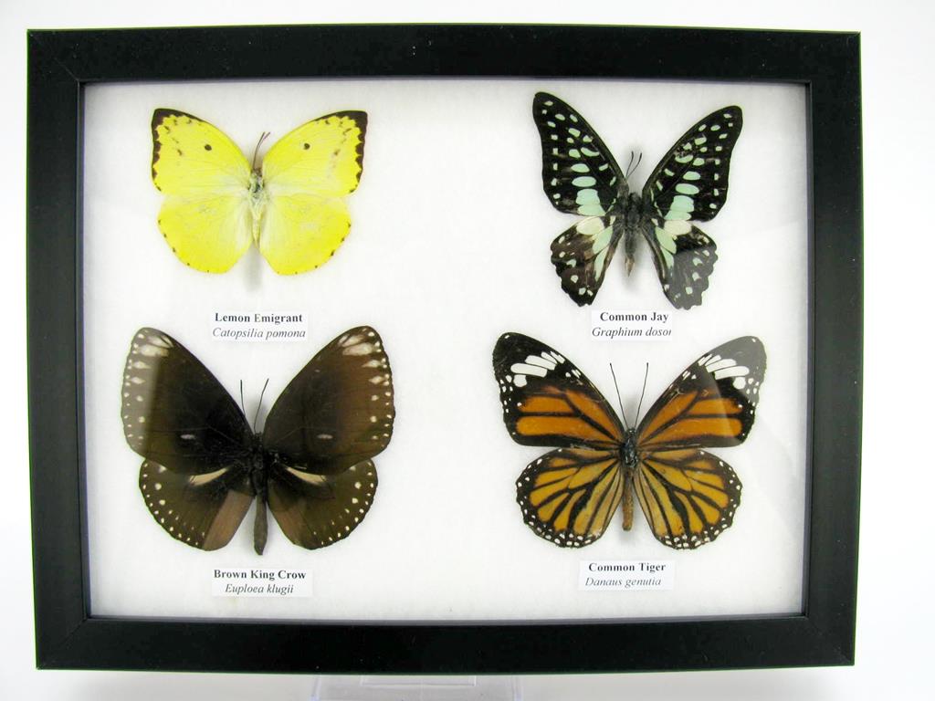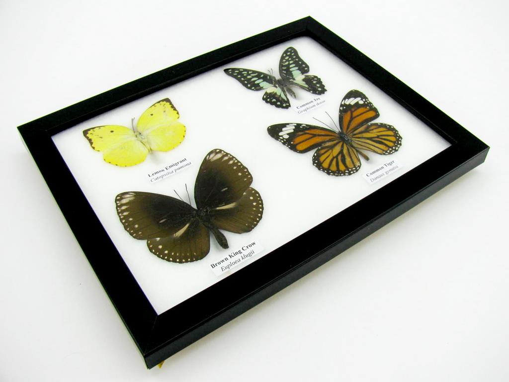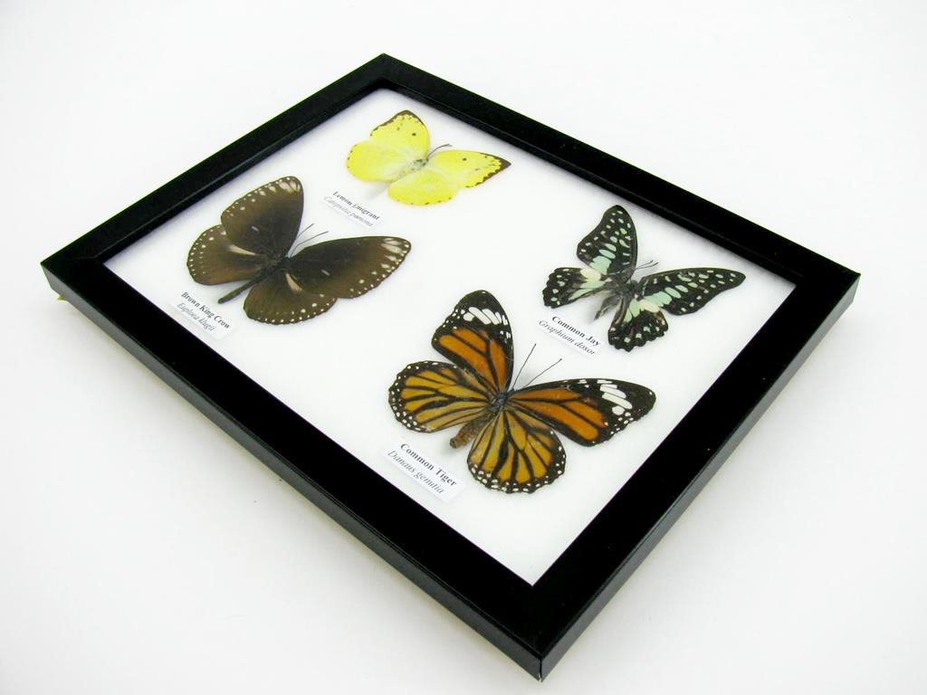 4 wunderschöne echte Schmetterlinge im Bilderrahmen – A-04-h-04