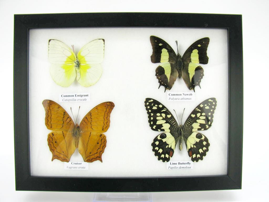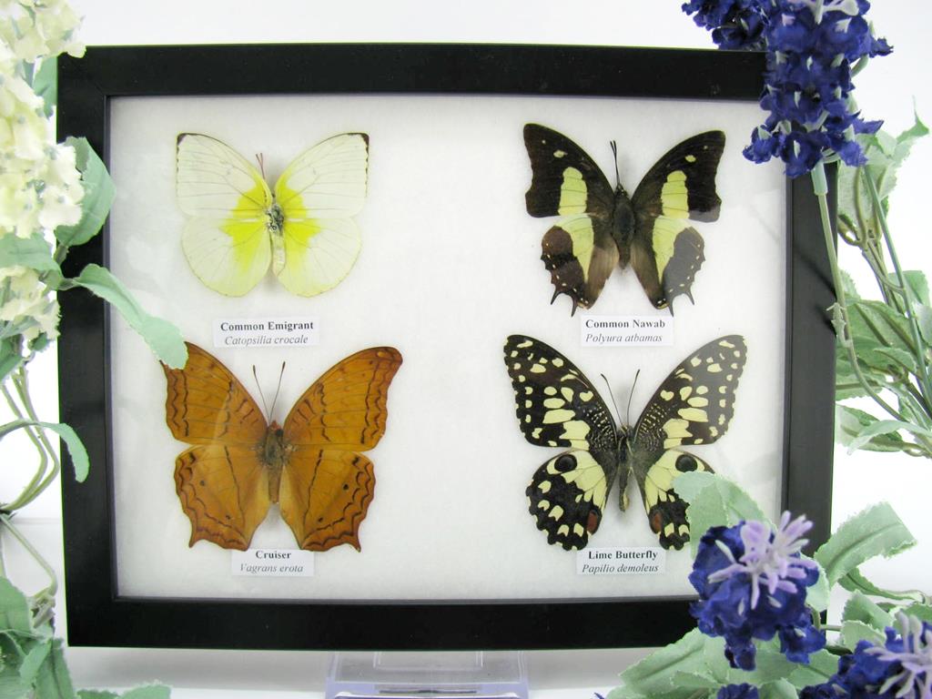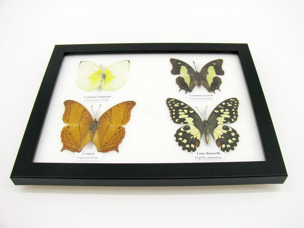 4 wunderschöne echte Schmetterlinge im Bilderrahmen – A-04-h-18
