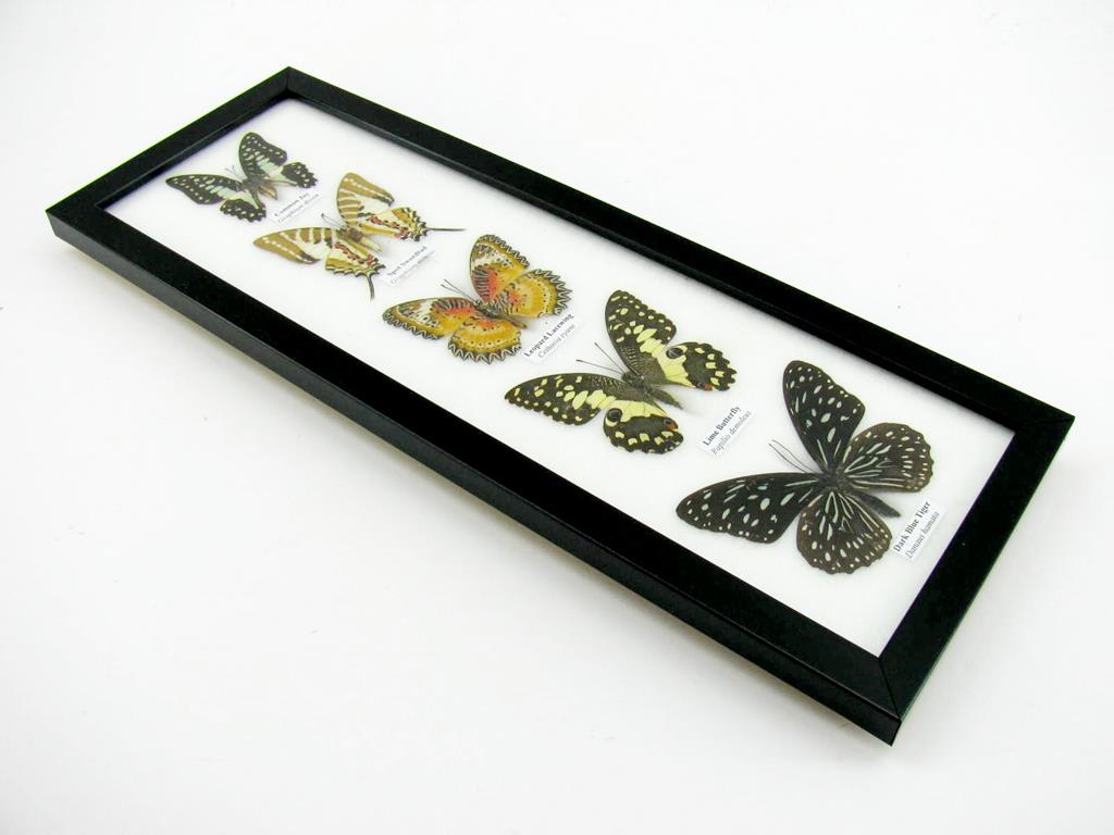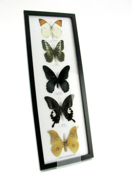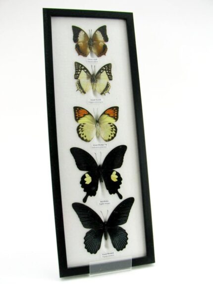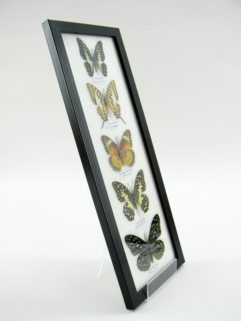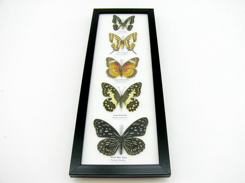 5 wunderschöne echte Schmetterlinge im Rahmen als Wandbild – A-05-h-05