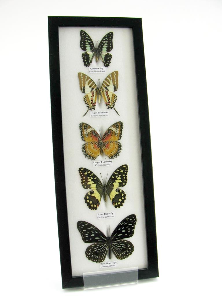 5 wunderschöne echte Schmetterlinge im Schaukasten 19,5 x 32,5 x 2cm Nr. q 05