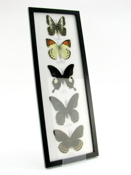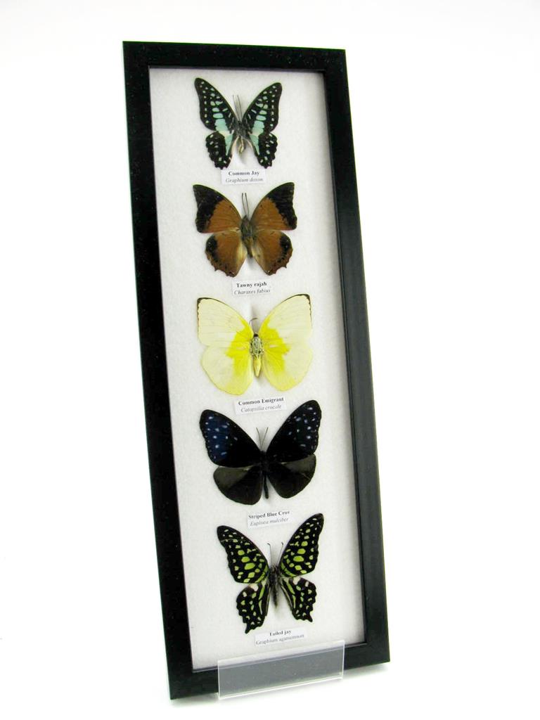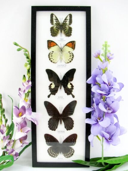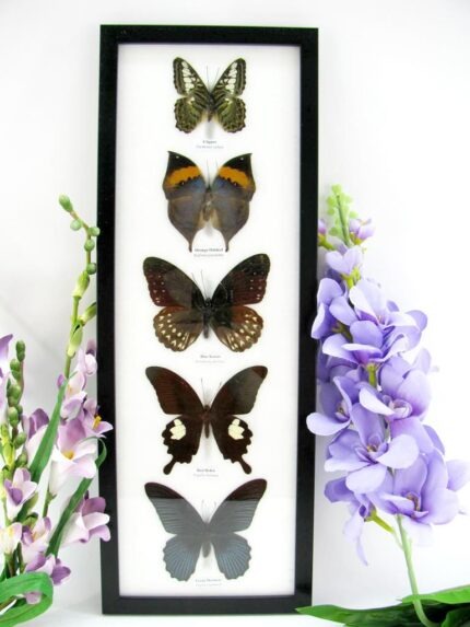5 wunderschöne echte Schmetterlinge im Rahmen als Wandbild – A-05-h-06