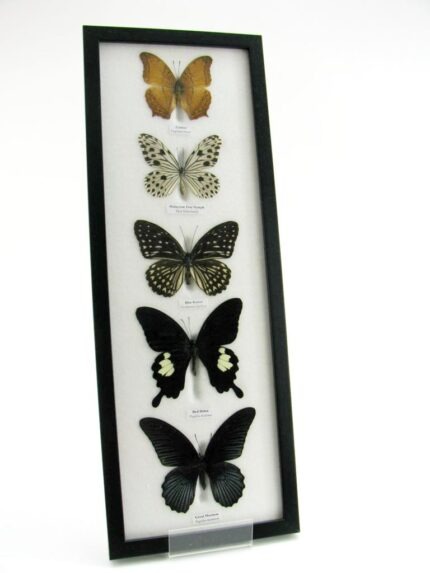 5 wunderschöne echte Schmetterlinge im Rahmen als Wandbild – A-05-h-07