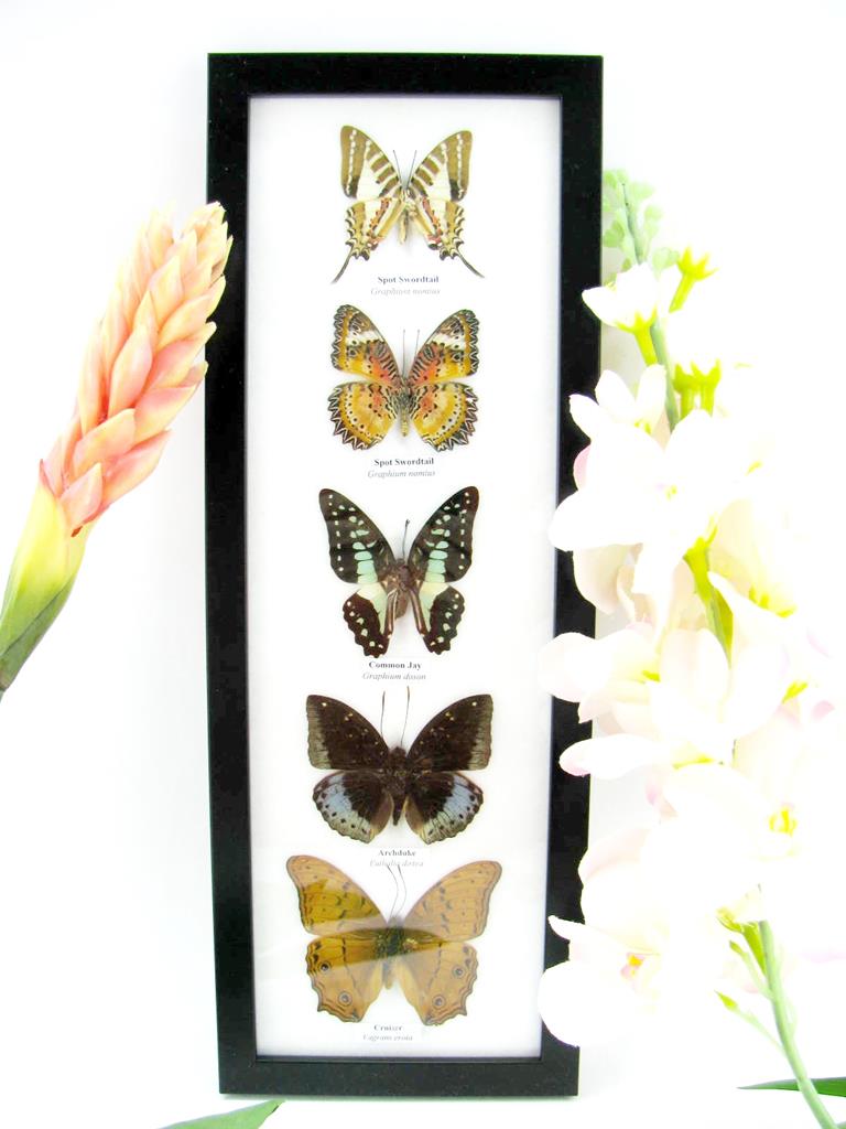5 wunderschöne echte Schmetterlinge im Rahmen als Wandbild – A-05-h-05