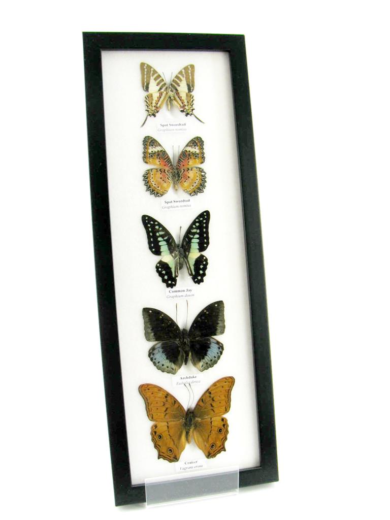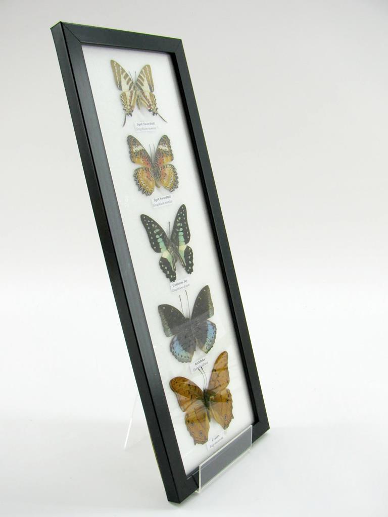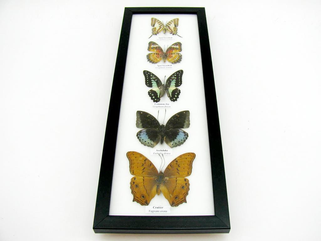 5 wunderschöne echte Schmetterlinge im Rahmen als Wandbild – A-05-h-04