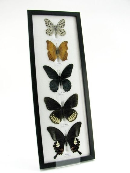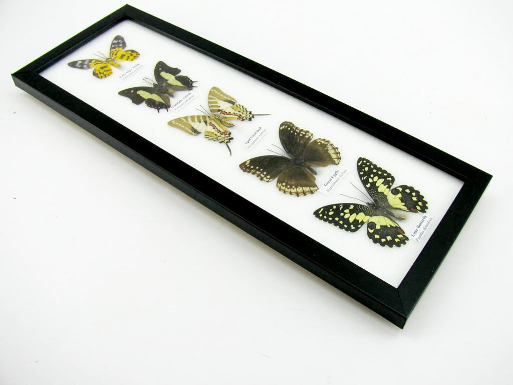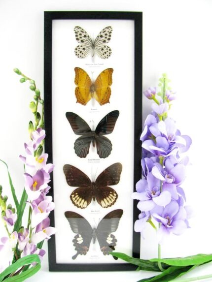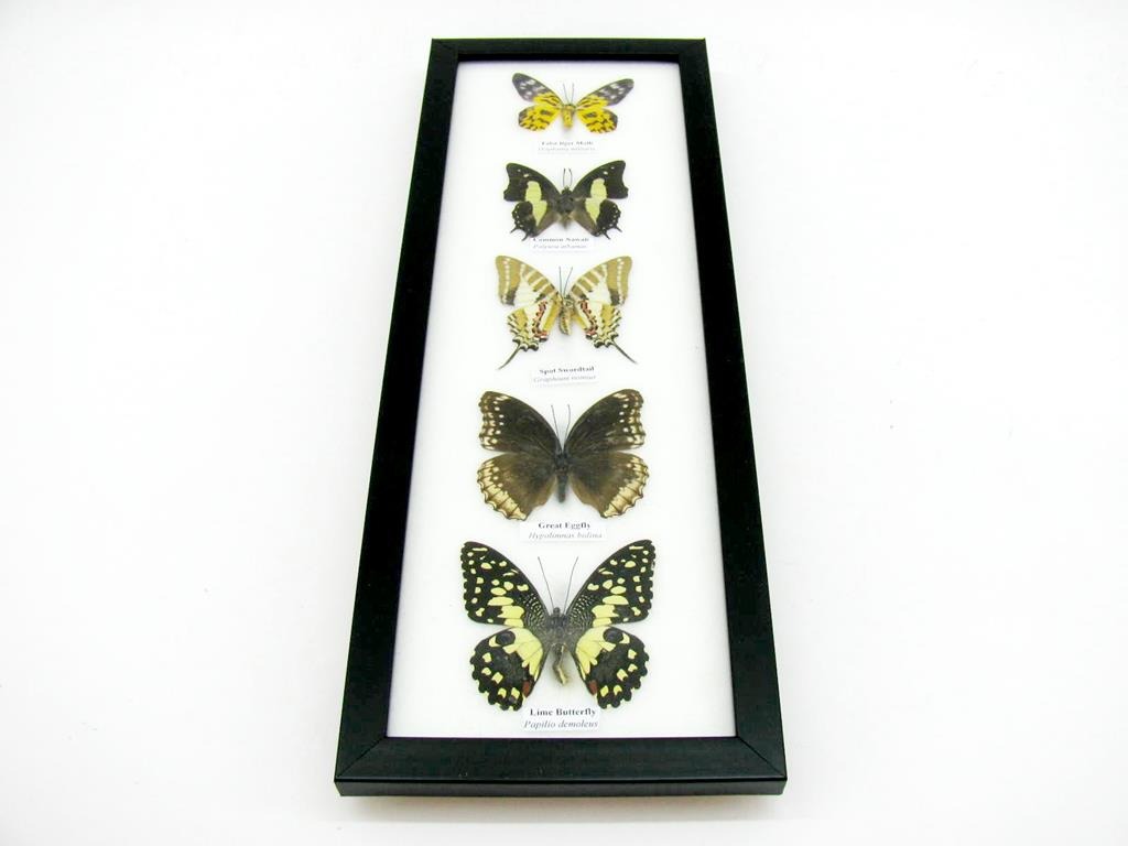 5 wunderschöne echte Schmetterlinge im Rahmen als Wandbild – A-05-h-01
