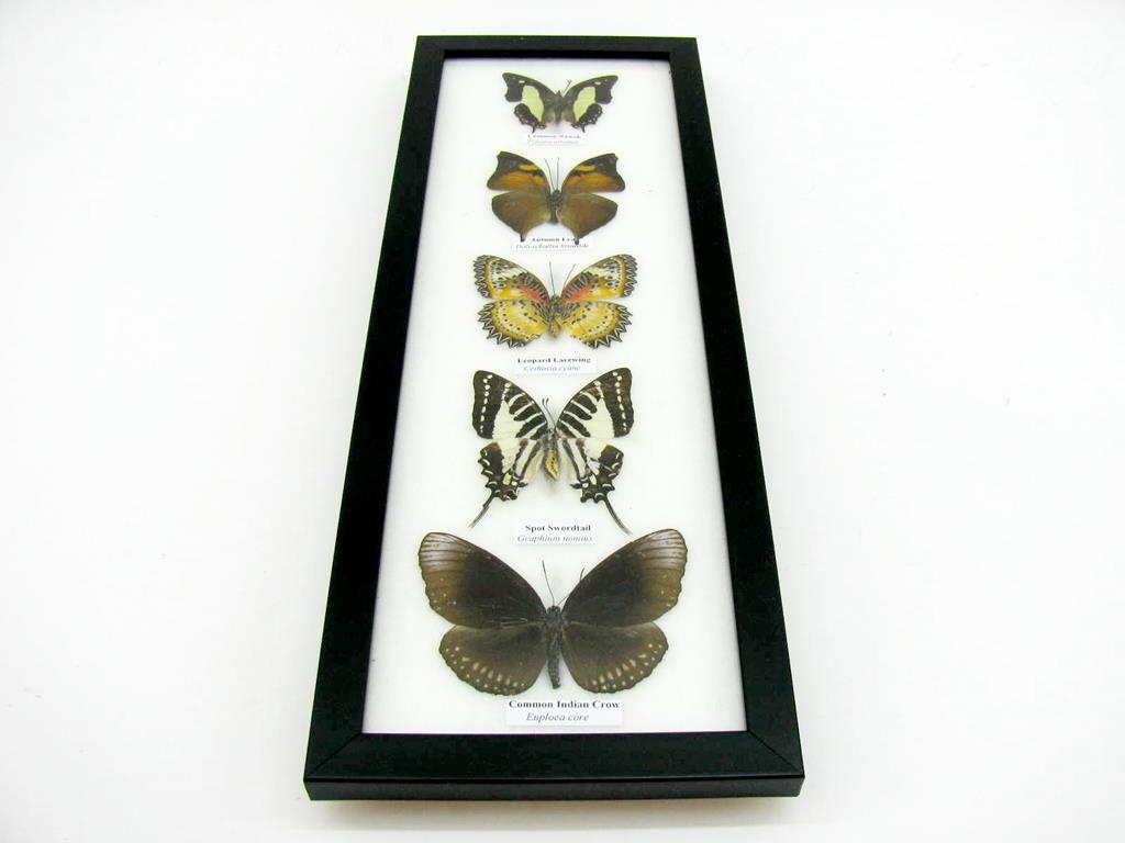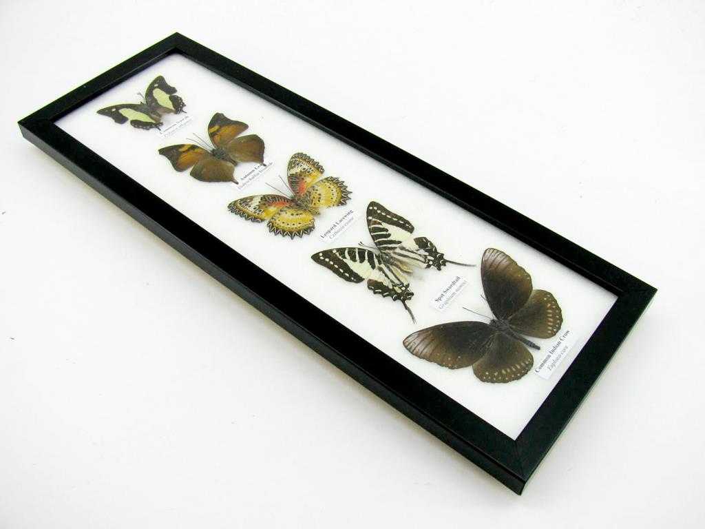 5 wunderschöne echte Schmetterlinge im Rahmen als Wandbild – A-05-h-03