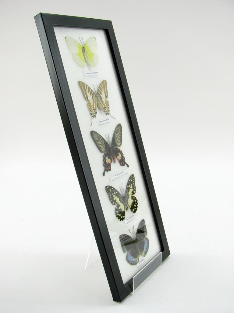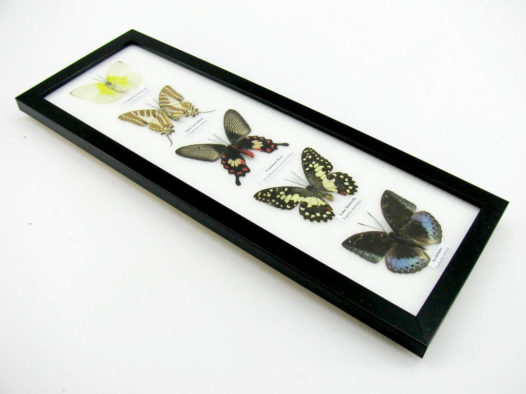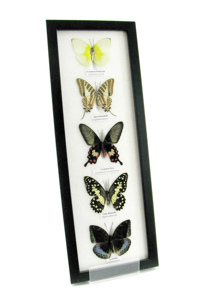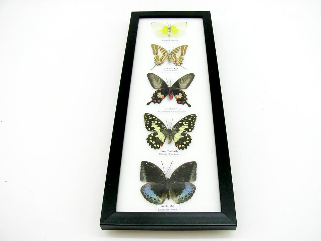 5 wunderschöne echte Schmetterlinge im Rahmen als Wandbild – A-05-h-01