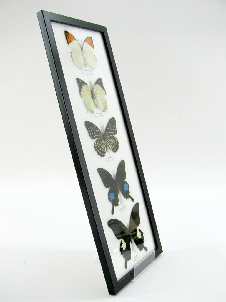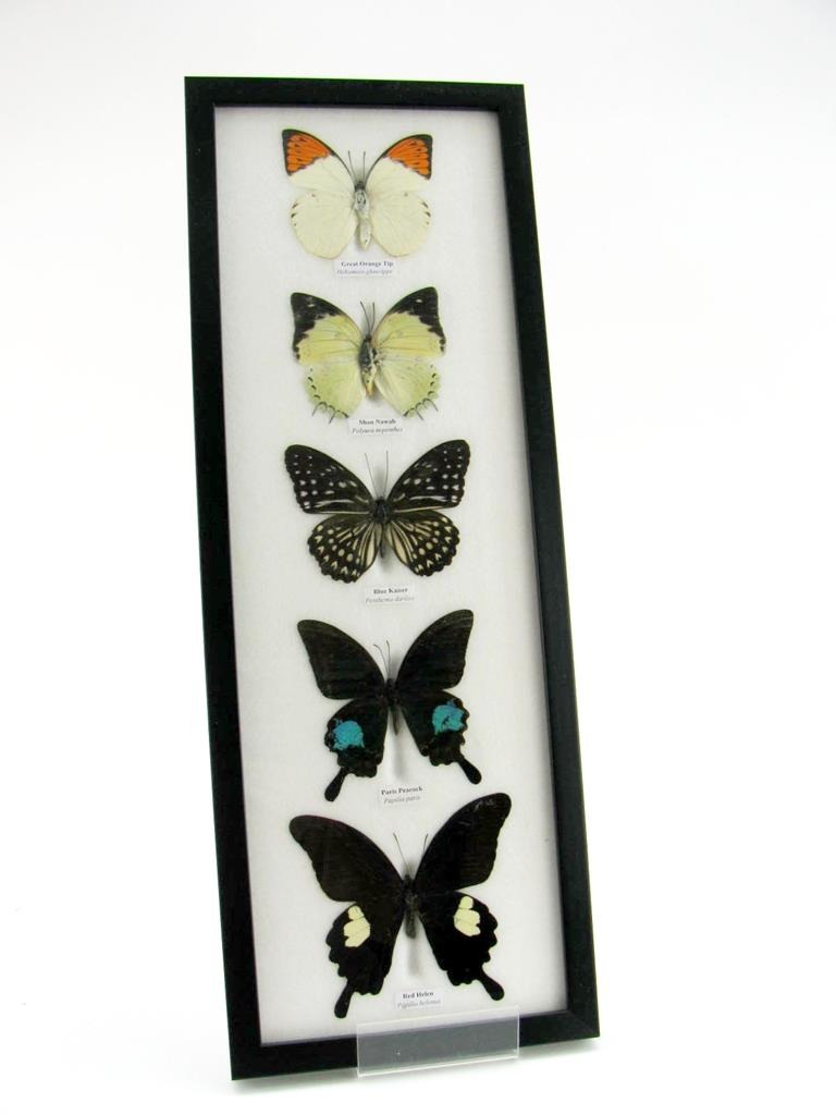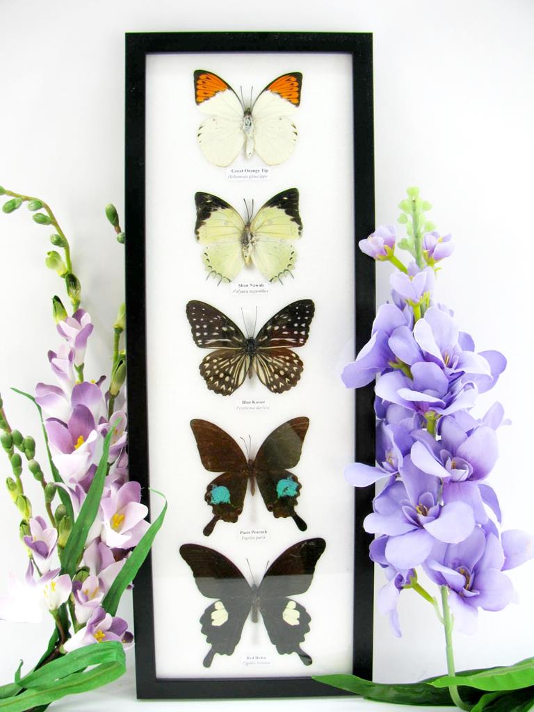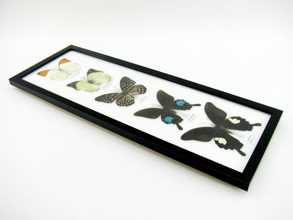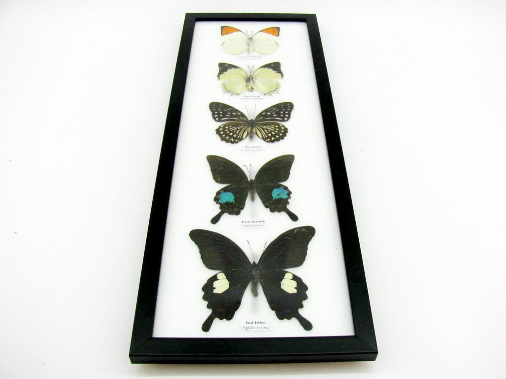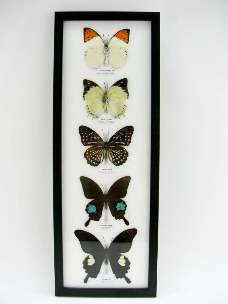 5 wunderschöne echte Schmetterlinge im Rahmen als Wandbild – A-05-h-06