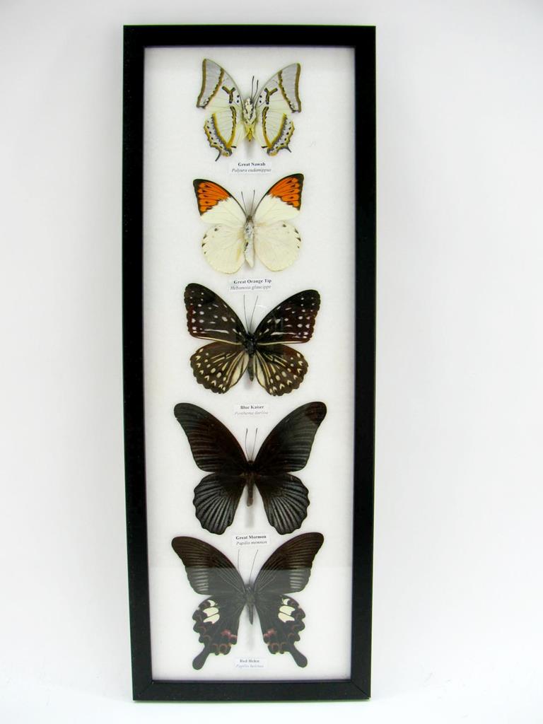 5 wunderschöne echte Schmetterlinge im XL Rahmen als Wandbild – A-05-xxl-01