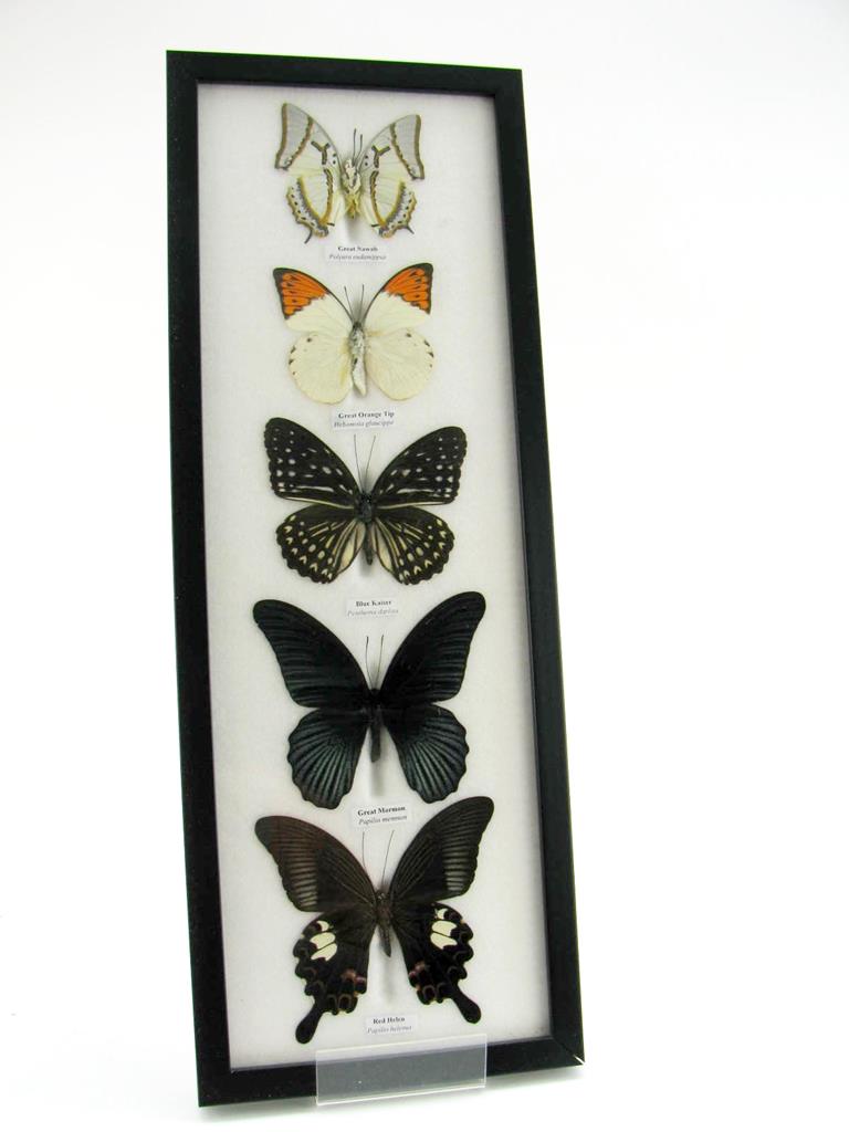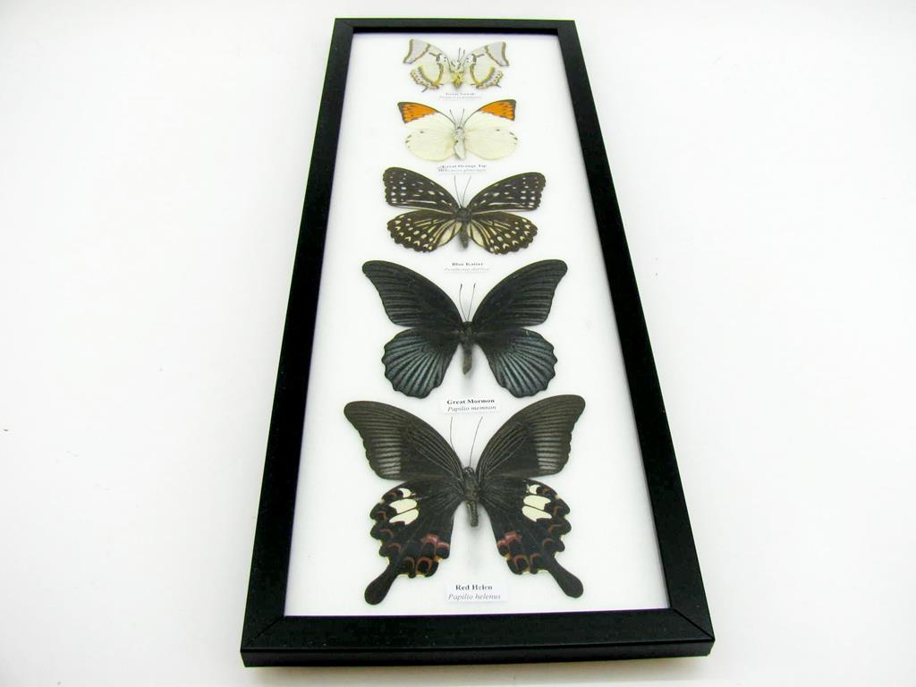 5 wunderschöne echte Schmetterlinge im Rahmen als Wandbild – A-05-h-08