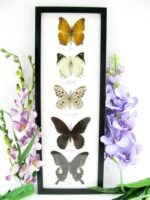 5 wunderschöne echte Schmetterlinge im Rahmen als Wandbild – A-05-h-01