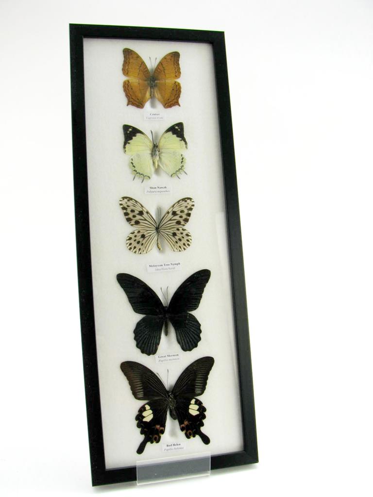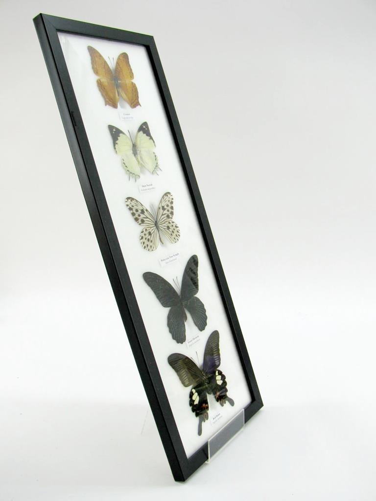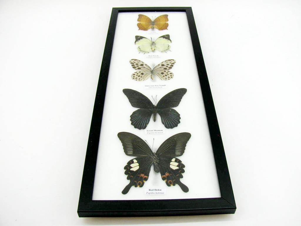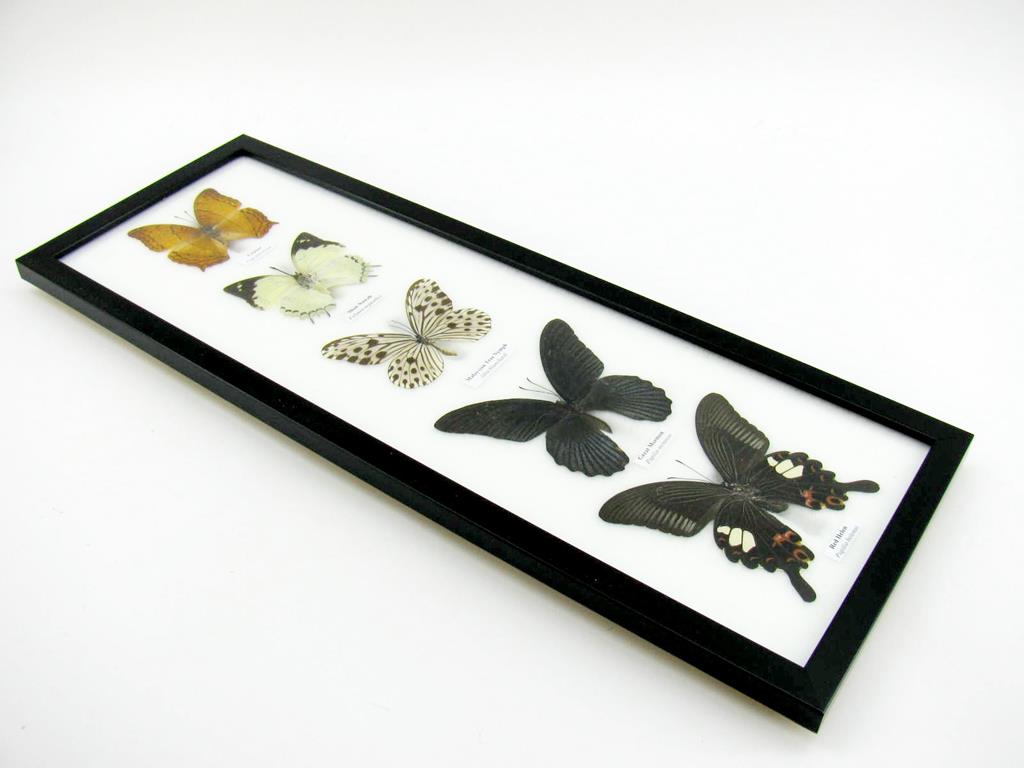 5 wunderschöne echte Schmetterlinge im Rahmen als Wandbild – A-05-h-05