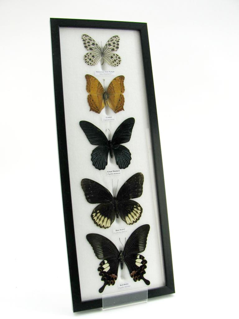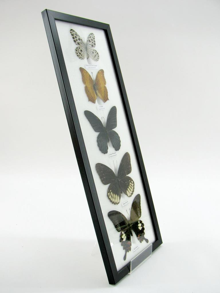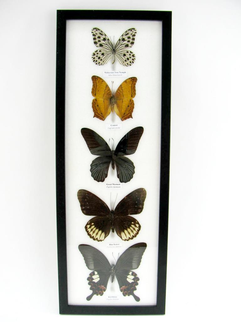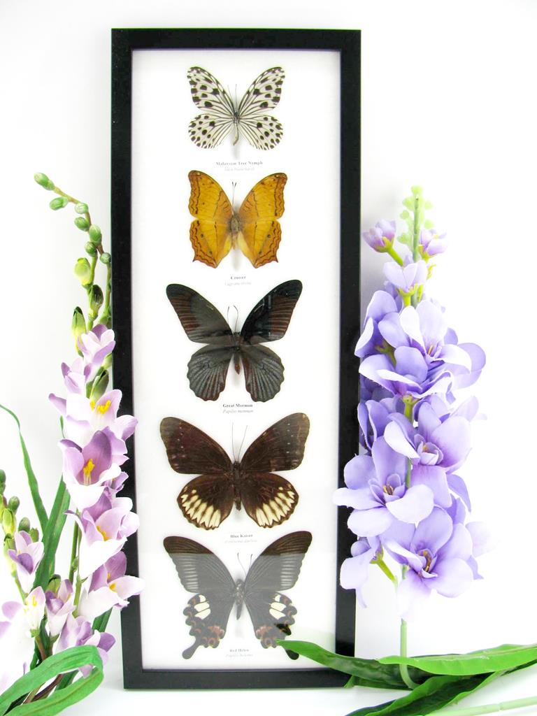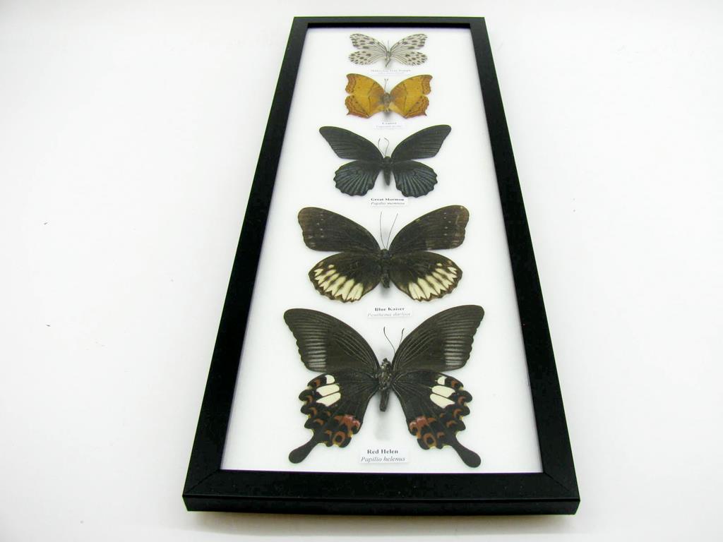 5 wunderschöne echte Schmetterlinge im Rahmen als Wandbild – A-05-h-05